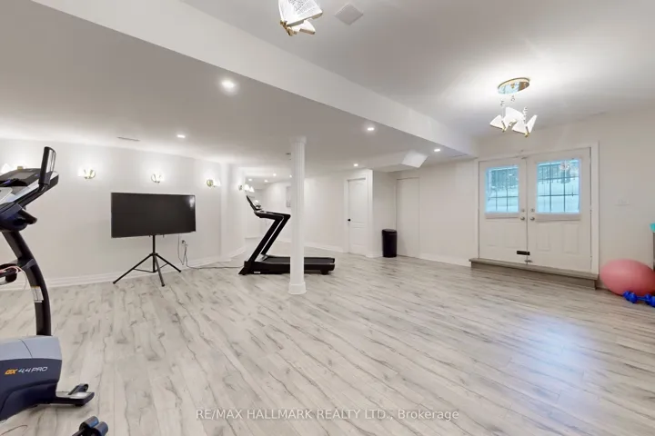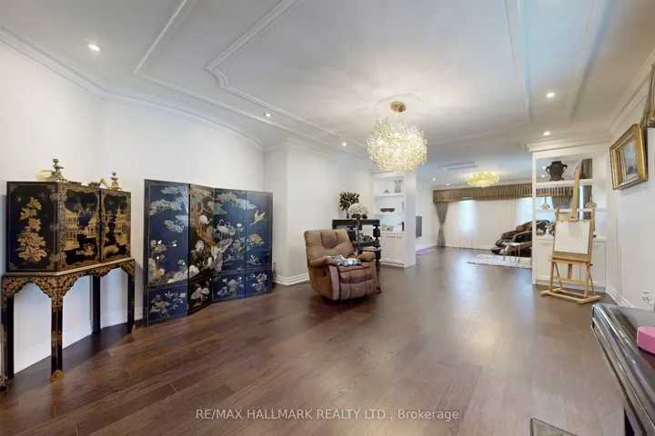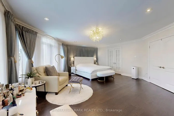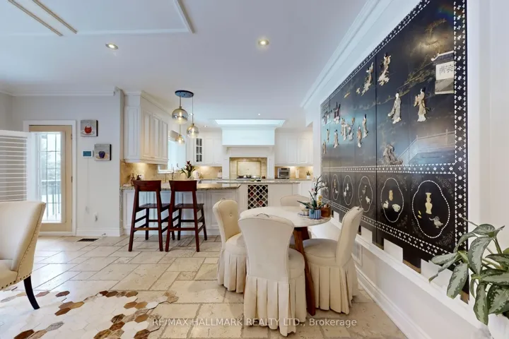 +"PublicRemarks": "Discover This Absolute Luxury Masterpiece Set Within A Prestigious Enclave of Executive Homes in Ballantrae! Extensively renovated, this sprawling two-storey home offers timeless elegance, exceptional scale, and resort-style outdoor living. Thoughtfully transformed from top to bottom w/brand new flooring, freshly finished walls, and elegant natural crystal light fixtures. A dramatic double-door entry opens to a grand rotunda foyer w/intricate wall/ceiling moldings, pot lights & a breathtaking crystal chandelier admired from both the main level & upper landing. Espresso-toned hardwood floors & wrought-iron staircase detailing. The chef's kitchen is a showpiece w/ornate cabinetry, skylight, granite counters, breakfast bar w/statement pendants lighting, tumbled marble backsplash w/under-cabinet lighting, built-in wine rack/wine fridge, and premium appliances including a Wolf 6-burner gas range. Adjoining dining area features ceiling detailing, a designer chandelier, and 2 walkouts from pergola patio & grounds and a private elevated deck. Inviting family room w/a gas fireplace and decorative mantle, crown molding, pot lights & custom drapery. Flexibility for a living room and a den w/built-ins. Main-floor bedroom w/ensuite, ideal for multi-generational living. Upstairs, a bright office w/built-in cabinetry, California shutters, Juliette balcony & custom drapery, joined by 2 additional bedrooms w/ensuites. Luxurious primary retreat w/double-door entry, an expansive wall of windows, custom chandelier, spa-inspired ensuite w/soaker tub & walk-in closet w/built-ins. Finished lower level w/large rec room, bedroom w/ensuite, versatile bonus room, 3pc bath, theatre w/projector & screen, and a walkout perfect for entertaining. Enjoy proximity to Ballantrae Golf & Country Club, top-rated schools, recreation facilities, community amenities, scenic walking trails, perfect for those who appreciate an active outdoor lifestyle."