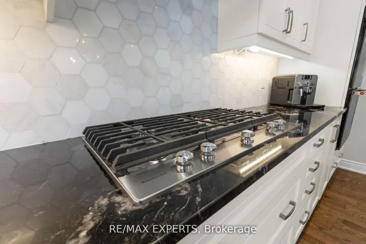 +"PublicRemarks": "Beautifully upgraded executive home with exceptional attention to detail throughout. Professionally landscaped with in ground sprinkler system, hot tub, gas fire table, and gas BBQ connection perfect for entertaining. Interior features include smooth ceilings, crown moulding, pot lights, feature wall, upgraded baseboards, 8 ft doors on main floor, and elegant rod iron staircase. Hardwood floors, Upgraded kitchen with enhanced cabinetry, granite counters, marble backsplash, built in gas cooktop range, and built in wall oven. Spa inspired primary ensuite with glass shower and free standing tub. Partially finished basement. Additional upgrades include central vac A/C, water softener, security system with exterior cameras. TURN KEY and MOVE IN READY"