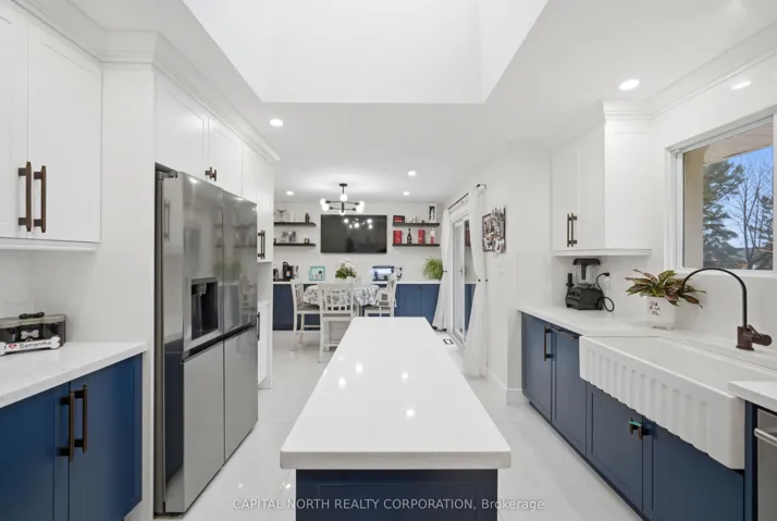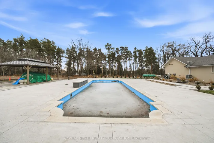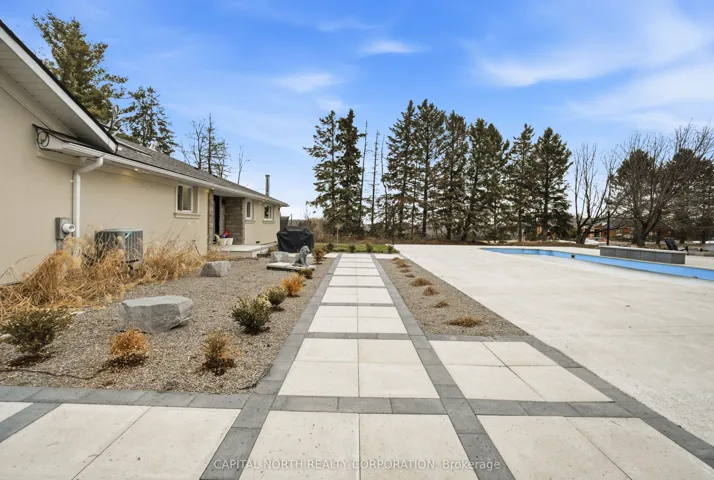 +"PublicRemarks": "Stunning fully renovated 3-bedroom bungalow set on 5 private acres offering an exceptional blend of modern luxury and country living. Chef's kitchen features custom navy and white cabinetry, quartz countertops, large centre island and farmhouse sink. Open concept main floor anchored by a dramatic floor-to-ceiling stacked stone fireplace with hand-hewn wood beam mantel. Professionally finished lower level includes a home theatre with coffered ceiling and custom millwork, spacious recreation room and a show-stopping primary ensuite finished entirely in black marble with frameless glass shower. Oversized attached garage with epoxy flooring and generous storage. Outside enjoy a stunning inground pool, concrete patio, gazebo and a secondary driveway with room to build an additional shop or outbuilding. Every inch of this property has been thoughtfully designed and meticulously finished. Truly move-in ready with space to grow."
