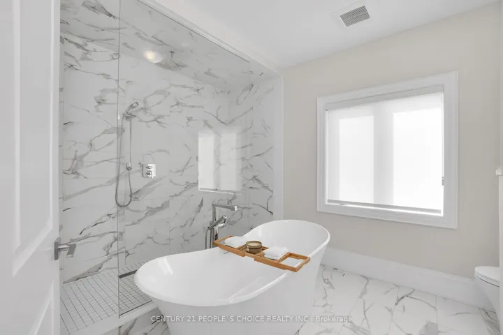 +"PublicRemarks": "Exceptional custom-built residence offering over 3,900 sq. ft. of refined living space on a premium 45 x 125 ft lot in one of Aurora's most prestigious and established neighbourhoods. Designed by a European architect and designer, this home blends timeless exterior character with a sophisticated modern interior.Open-concept main level with soaring 11.5 ft ceilings and 10 ft coffered ceilings in all bedrooms. High-end finishes throughout include a designer kitchen with Jenn Air appliances and built-in wine fridge, custom cabinetry, European triple-pane windows and doors, and a spa-inspired primary ensuite. Heated floors in the basement and all bathrooms.A distinctive design language flows throughout, with refined geometric and hexagonal detailing integrated into feature walls, tilework, fixtures, and hardware. Extensive LED accent lighting enhances architectural features and creates a warm, upscale ambiance. Natural light fills the home through a skylight and sun tunnel.The primary suite offers a private retreat with a Juliet balcony and electric fireplace. Spacious bedrooms, custom millwork, and thoughtfully designed spaces provide both comfort and understated luxury.Beautifully landscaped grounds with approx. 1,000 sq. ft. of interlock, a large deck for entertaining, and a private yard. Double garage with lift potential (4 parking).Prime location directly across from Town Park, with weekend farmers' markets and concerts. Walking distance to GO Station, top-rated schools, library, restaurants, and a modern playground.Fully prepared basement with separate entrance, heated floors, and rough-ins for kitchen and bathroom offers excellent potential for a legal rental or in-law suite."