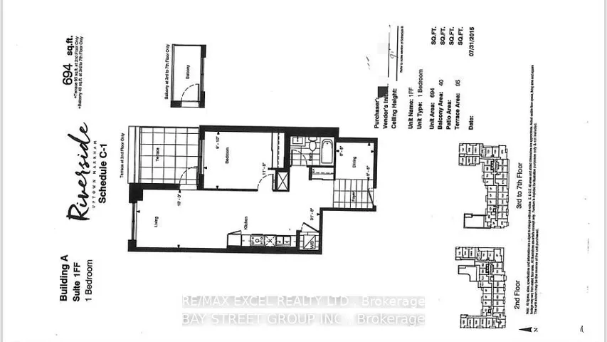 +"PublicRemarks": "You don't wanna miss!!! Great Location Riverside Building A.9"ceiling! Great Layout 1 Bedroom + DEN. Rare-fnd large living room space in condo!! Bright, Spacious And Sun With Unobstructed View Over Park. Steps To Uptown Sq & Main Street, Whole Foods, Banks Lcbo &Restaurant. Easy Access To Viva, Yrt, To Train, Hwy 404, Close To York University, Ymca, Seneca College And York University Markham Campus, Cineplex, Amenities Incl. 24 hr Concierge. 1 parking , 1 locker included."