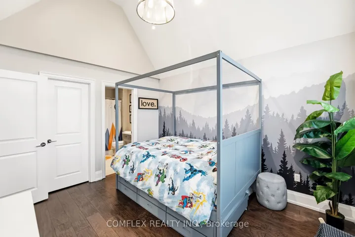 +"PublicRemarks": "Welcome to your dream home. A truly exceptional, custom build showcasing only the finest finishes and craftsmanship throughout. Designed to impress, this one-of-a-kind residence features soaring 10 ft ceilings on the main level, rich hardwood flooring, and an abundance of natural light enhanced by designer lighting. The heart of the home is a stunning, open-concept living space highlighted by extra-large sliding doors, seamlessly extending your living area outdoors and perfect for entertaining in style. The chef-inspired kitchen features vaulted ceilings, quartz countertops, and premium finishes that elevate everyday living. Upstairs, the four bedrooms each have a private ensuite and walk-in-closet. The primary ensuite feels straight out of a magazine - a spa-inspired sanctuary designed for unwinding in comfort. The professionally finished basement with 9 ft ceilings includes a separate entrance from the garage, offering incredible flexibility for extended family, or guests. Set at the end of a quiet cul-de-sac and surrounded by mature trees, this property offers exceptional privacy while being just minutes from vibrant downtown Newmarket. No detail has been overlooked in this meticulously designed, custom-built masterpiece - where luxury, functionality, and location come together seamlessly."