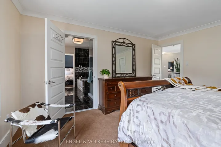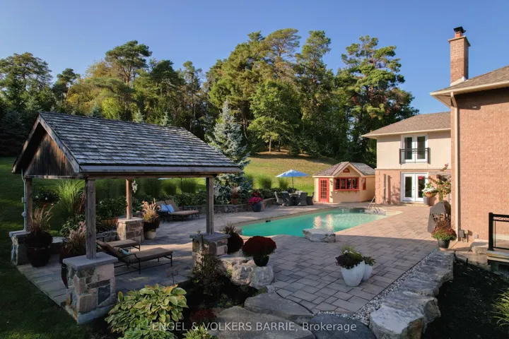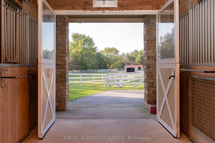 +"PublicRemarks": "Enjoy sophisticated luxury on 10 private acres at this equestrian estate featuring abundant light, circular stair, crown molding, premium finishes, laundry on two levels, and heated floors in bathrooms, kitchen, and office. The spacious principal bedroom opens to a jaw-dropping opulent dressing room with illuminated cabinets and quartz top island. Principal ensuite includes dual shower, tulip tub, and two vanities. Guest rooms share access to dual-vanity ensuite with Jacuzzi and glass shower. Fourth bedroom / office is drenched in natural light and has custom cabinetry with one-piece maple countertop. Enjoy a chefs kitchen with WOLF range, indoor BBQ, steamer, double wall ovens, Big Chill appliances, and reverse osmosis tap. The massive dining room showcases a floor-to-ceiling wine wall; living area features coffered ceiling and wood fireplace with an adjacent great room boasting 17 ceiling. Lower level boasts a huge rec room, cedar-walled sauna, massive storage and mud rooms, dog wash station, and access to a 3-car heated garage with epoxy floors. Spa-like outdoor space has heated saltwater pool, outdoor shower, cabana, 6-person hot tub, and wraparound deck with glass rail & Duradeck floor. This haven for equestrians and outdoor enthusiasts has direct access to kms of trails. The four-stall barn includes tack room and frost free water tap. Horses can shelter in fan-equipped run-in sheds or enjoy one of 6 grass paddocks, sand ring, or round pen, all surrounded by FLEX fencing and electric braid. Never break trough ice again, with frost-free watering posts. Equipment can be stored in the huge drive shed with 11 foot doors, loft, and hay storage. Property has several perennial gardens, an aromatic retreat garden overlooking the North paddocks, all of which have auto sprinklers and landscape lighting. Enjoy ultimate privacy with the towering trees surrounding the property and with remote control entry gate and CCTV cameras. More details in attached Brochure."