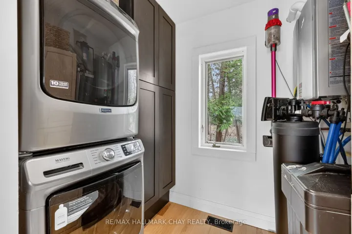 +"PublicRemarks": "Experience the ultimate lakefront lifestyle with 50 ft of pristine, direct waterfront on Lake Simcoe's Cooks Bay! Tucked at the end of a quiet dead-end street and siding onto lush forest, this private 173-ft deep lot is a rare find! Enjoy endless outdoor fun with firepits, fruit trees, trampoline area, and space for family gatherings-plus you're just ~100 ft from a beautiful Lake Simcoe sandbar! This fully renovated home features a stunning chef's kitchen with a 10-ft island, farmhouse sink, ZLINE 8-burner gas stove, pot filler, double oven & skylights, complemented by hardwood floors and breathtaking water views from nearly every room. Relax by the cozy fireplace or soak in the gleaming water from the sun-filled dining/ sunroom. Main floor offers laundry with built-ins and a bright spacious mudroom with double-door entry. Upstairs, the primary retreat impresses with 14-ft soaring ceilings, private balcony, walk-in closet & spa-like ensuite with jacuzzi tub. Additional features include an oversized insulated detached garage (18'x16') with EV hookup & 100 AMP sub-panel, 200 AMP service, tankless water heater, nat gas BBQ hookup, hot tub pad & invisible fence. Recent Renovations; kitchen ('21), flooring ('22), most windows ('22), main floor bath ('26), shiplap décor ('21), washer/dryer ('21). Prime location minutes to beaches, boating, golf, ice fishing, shopping, restaurants, Yonge St & Hwy 400-your perfect year-round waterfront escape & Family home!"