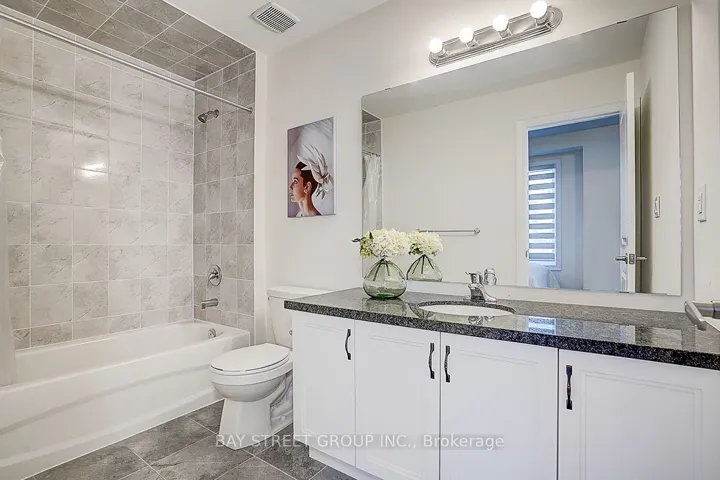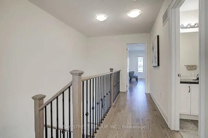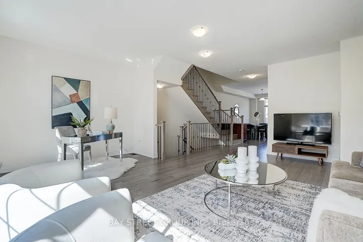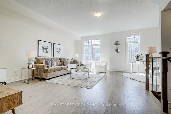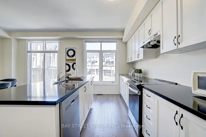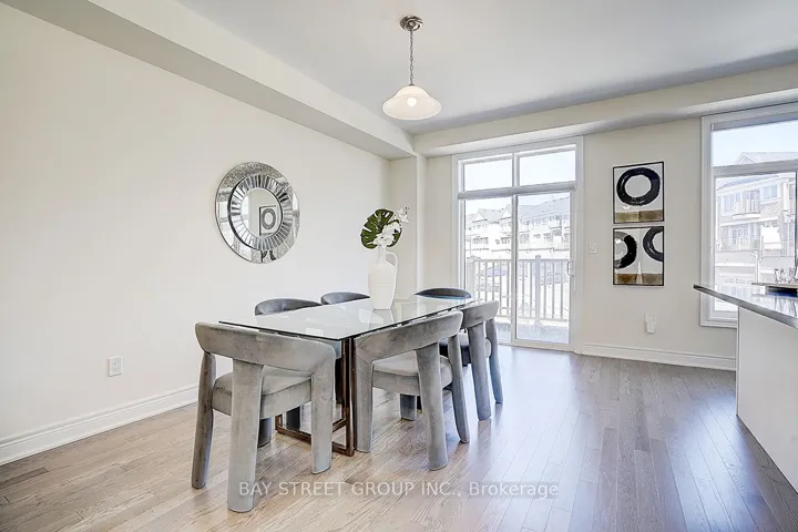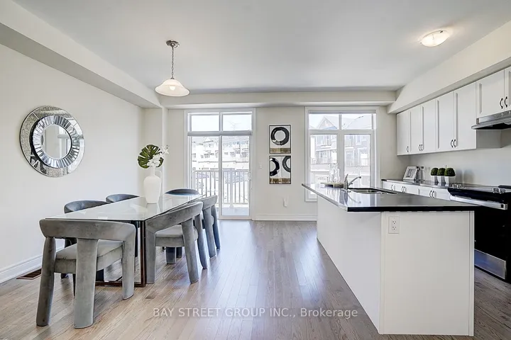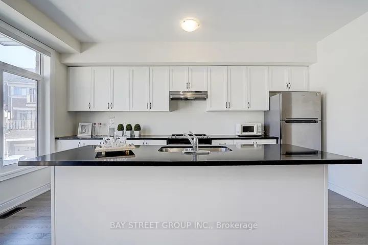 +"PublicRemarks": "A rare offering of a beautifully upgraded townhouse featuring an impressive 2,400 sq.ft. of functional layout ,Featuring 9-ft ceilings on both the main and second floors, providing a bright and open atmosphere throughout. The main floor includes a bedroom with a full bathroom, ideal for extended family, guests, or a home office setup. Interior highlights include hardwood flooring throughout and a staircase finished with wrought iron pickets. The modern kitchen is equipped with stainless steel appliances, center island, and breakfast area, and opens to a sun-filled family room with large windows, perfect for everyday living and entertaining. The spacious primary bedroom features a 5-piece ensuite and a large walk-in closet. Conveniently located with easy access to Hwy 407 & 401, top-rated schools, parks, golf courses, and a wide range of amenities including major shopping centres, big box retailers, and banks."