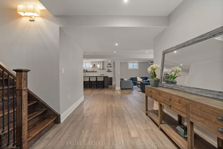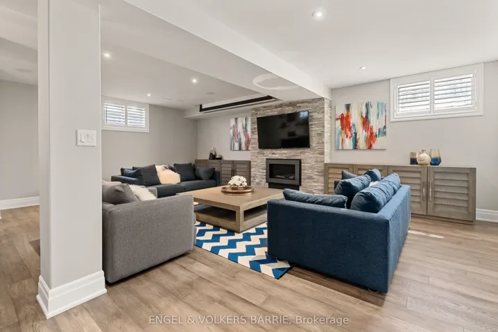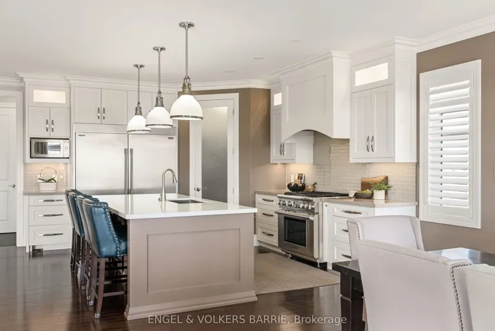 +"PublicRemarks": "327 Sunnybrae Avenue presents a custom stucco and stone bungalow of exceptional finish and thoughtful design, set on a private half-acre lot with no rear neighbours in one of Innisfil's most sought-after communities. Offering over 5,100 square feet of fully finished living space, this home delivers luxury, function, and privacy in equal measure.The main level features an open-concept great room with vaulted ceilings, hardwood flooring, and a wood-burning stone fireplace as its centrepiece. The gourmet kitchen is outfitted with a Thermador gas range, walk-in pantry, wine fridge, oversized island, and custom glass-front display cabinetry above the separate bar area. The primary suite includes a walk-in closet and a five-piece heated-floor ensuite. Two additional bedrooms, main floor laundry, a mudroom with separate side entry, and a heated triple-car garage with epoxy flooring and lift-capable ceiling height round out the main floor. Downstairs, nine-foot ceilings set the tone for a spectacular lower level featuring engineered hardwood throughout, a large recreation room with gas fireplace, a built-in projector and electric screen for game days and movie nights, a dedicated gym, and a full kitchenette. Two bedrooms share a four-piece bathroom with heated floors and a private entrance through the garage makes this level a seamless fit for in-law or extended family living. Outside, mature trees line the rear of the lot, providing a natural backdrop to the stamped concrete patios and walkways, composite deck, eight-person hot tub, wrought iron fencing, in-ground irrigation, and impeccably maintained professional landscaping. There is also room for an in ground pool (permit is in place). Meticulously maintained, thoughtfully upgraded, and ready for its next chapter this is the one worth seeing in person."