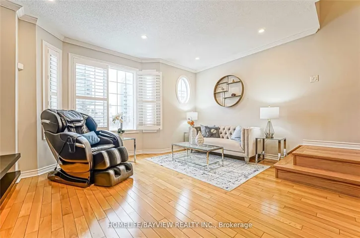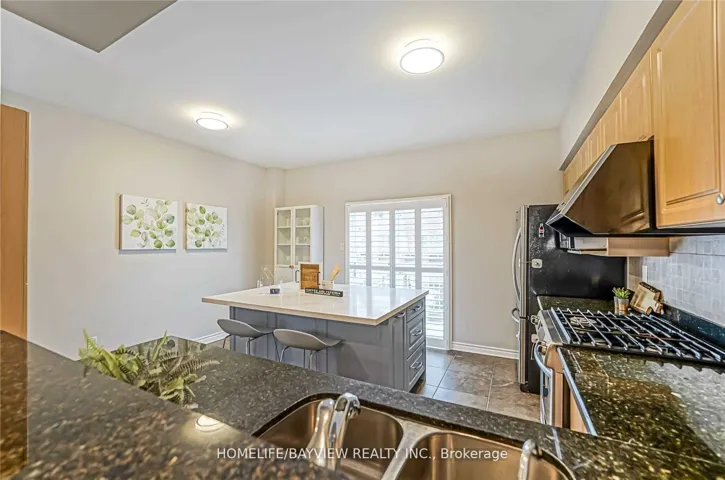 +"PublicRemarks": "Bright & Spacious 4-Bedroom Executive Townhome with 2-Car Garage in a Prime Markham Location! This upgraded home features a modern kitchen with granite counters, a large island, stainless steel appliances including a gas stove, a pantry, and a walk-out to a private balcony. The open-concept dining and family room shines with California shutters, hardwood floors, and pot lights throughout. The versatile layout offers a large primary bedroom with a 4-pc ensuite plus two additional large bedrooms on the upper level, while the ground level features a private office or in-law suite with its own 3-pc ensuite and bright above-grade windows. Functional living includes direct garage access, a separate laundry room, and a dedicated storage area. Perfectly situated steps from top-rated St. Robert H.S., local restaurants, and Viva Transit, with immediate access to Hwy 407 & 404."