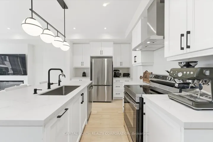 +"PublicRemarks": "Welcome To 32 Holyrood Crescent In Kleinburg! This Beautifully Upgraded End-Unit 3-Storey Townhome Offers Over 2,200 Sqft Of Above-Grade Living Space, Featuring 3 Bedrooms And 3 Bathrooms, And Showcases Quality Finishes And Thoughtful Upgrades Throughout, Blending Modern Design With Everyday Functionality. The Main Level Features Dual Frontage, Enhancing Both Curb Appeal And Accessibility, Along With Direct Access To The Garage, A Convenient Laundry Area, And A Bright, Versatile Space Ideal For A Home Office, Additional Living Area, Or Children's Playroom. The Second Level Is Designed For Both Everyday Living And Entertaining, Featuring An Open-Concept Layout That Seamlessly Connects The Living Room, Dining Area, And Kitchen. The Upgraded Kitchen Is Complete With Quartz Countertops And A Stunning Book-Matched Backsplash That Serves As A Sophisticated Focal Point, While The Dining Is Enhanced By A Custom Dry Bar With A Built-In Wine Fridge And Offers A Walkout To A Private Balcony For Seamless Indoor-Outdoor Living. A Conveniently Located Powder Room Completes This Level. The Third Level Offers Three Generously Sized Bedrooms, Including A Primary Retreat With A Walk-In Closet And A 3-Piece Ensuite, While Both Upgraded Bathrooms On This Level Feature Quartz Vanities, Adding A Cohesive And Elevated Finish Throughout. Located In The Prestigious Kleinburg Community, This Home Is Just Minutes From Highway 427, Top-Rated Schools, Parks, Scenic Trails, And The Charming Kleinburg Village, Offering Easy Access To Boutique Shops, Cafes, Restaurants, And Everyday Essentials Within A Quiet, Family-Friendly Neighbourhood."
