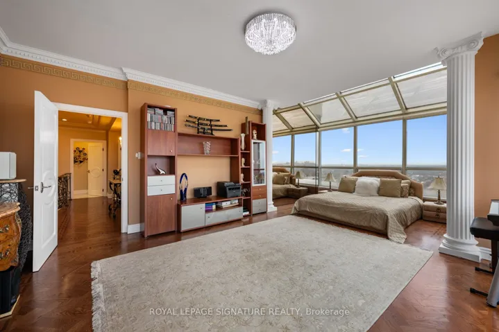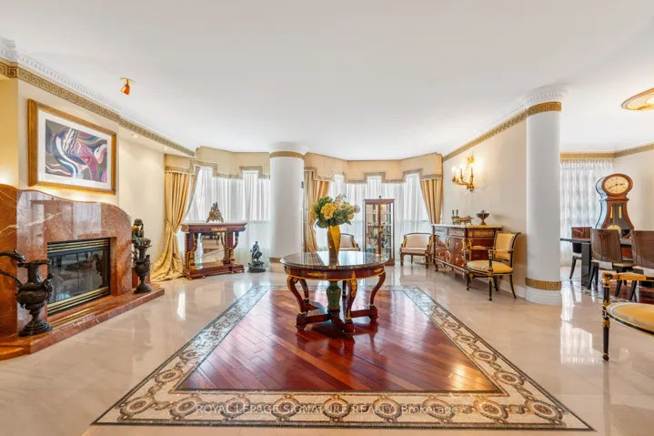 +"PublicRemarks": "Welcome to 7300 Yonge Street, PH9 - Skyrise on Yonge, a rarely available, one-of-a-kind 2-storey penthouse offeringapproximately 3,620 sq. ft. of luxurious living space in the heart of Thornhill.This bright corner suite is an entertainer's dream, featuring breathtaking panoramic south-east views and an impressive grandfoyer with mosaic inserts in both ceiling and flooring. The residence offers 2 spacious bedrooms plus a solarium and 3 beautifullyrenovated bathrooms.Designed with exceptional craftsmanship and upscale finishes throughout, this home showcases a gourmet kitchen, elegantliving and dining areas with crown mouldings and architectural columns, and a striking floating wrought iron staircase. Theprimary suite is a private retreat, complete with a picture-window sitting area and sauna.Enjoy seamless indoor-outdoor living with a private terrace on the second floor and an additional balcony off the family room.Additional features include two parking spaces, a locker, and a large laundry room with ensuite storage.All-inclusive maintenance fees cover utilities plus TV, internet, and telephone.Residents enjoy premium amenities including an indoor pool, gym, party room, tennis and squash courts, and guest suites.Ideally located with TTC at your doorstep, and close to shopping, dining, and places of worship.A truly exceptional residence offering space, elegance, and convenience-showing to perfection."