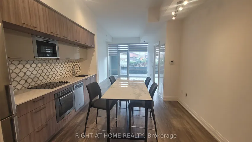 +"PublicRemarks": "Spacious corner suite at Trinity Lofts - a boutique 8-storey building in Corktown. Over 700 sq.ft. of living space plus a 182 sq.ft. wraparound balcony with clear, sunny views. One bedroom plus den, engineered hardwood, and a stylish kitchen with quartz counters. 9-ft concrete ceilings give the suite its loft character, and the large living area fits both a dining table and a full sectional. The den works perfectly as a home office. Enjoy unobstructed sunsets and tree-lined views from the balcony. Terrific Corktown location. Walk to brunch, cafés, and shops. Minutes to the Distillery District, Corktown Common, and St. Lawrence Market. Nearby dog park, bike trails, and quick DVP access. Two blocks from the future Distillery District station on the Ontario Line."