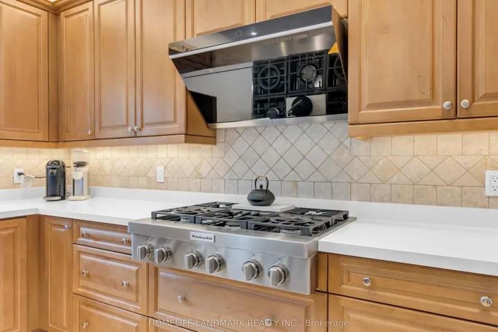 +"PublicRemarks": "Exceptional custom-built home in prestigious Bayview Hunt, surrounded by multi-million dollar residences. Offering close to 6,000 sq ft of living space, this meticulously maintained property features 9 ft. Ceilings, Crown molding, 3 Skylights, Smooth ceiling, Pot light, Travertine tiles, Garage doors 1 foot wider than regular size and Hardwood flooring throughout, with spacious principal rooms ideal for entertaining. Gourmet kitchen with Quartz island, Pantry, and Breakfast area with Walkout to a large Concrete Deck, open to a cozy Family room with Fireplace. Main floor Office with nearby 3-piece Bath ideal for Guests or multi-generational living. Upper level offers 5 generous Bedrooms and 3 full Baths, including a primary retreat with built-in walk-in closet and spa-like ensuite with double sinks, glass shower, and soaker tub. Finished W/O basement with Separate access, full Kitchen, 2 Bedrooms, large Rec area with Fireplace, 4-piece bath, and laundry rough-in-offering excellent potential for an in-law suite or future apartment. Landscaped yard with stone patio. Close to top schools, parks, shopping, transit and GO station."