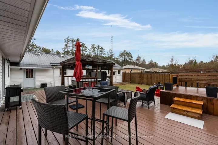+"PublicRemarks": "RANCH BUNGALOW ON OVER AN ACRE OF PROPERTY BACKING ONTO CFB BORDEN WITH 2,400+ FINISHED SQ FT! Hot tub under the cabana, firepit for after dark, and over an acre of private property with the wooded grounds of CFB Borden behind give this bungalow the kind of backyard buyers do not forget. Set on a quiet street on a 140 x 330 ft lot with no direct rear homes behind, the outdoor space brings plenty to work with, including a generous deck, patio, gazebo, shed, playset, and a fenced yard area for kids and pets. The home makes a beautiful introduction with a brick front exterior, large covered front porch, metal roof, attached garage, and driveway parking for 9 vehicles. The interior follows through with nearly 2,000 sq ft above grade, fresh paint, newer door hardware, updated fans, and a spacious layout that gives everyone room to spread out. The kitchen is well equipped with ample cabinetry, generous counter space, easy-care flooring, a tile backsplash, and pot lights, while open sightlines carry into the family and dining area, where a vaulted cathedral ceiling, fireplace, and walkout to the back deck bring warmth and character. A separate front living room with a large bay window adds another place to gather, while the primary bedroom features its own walkout, walk-in closet, fireplace, and 2-piece ensuite. The finished basement extends the living space with a rec room, third bedroom, and bonus flex area ideal for a home office or hobby area. Main floor laundry, high-speed internet, plenty of storage, and a backup generator hooked up to the panel add even more function. For military personnel, it is hard to beat a location with CFB Borden just minutes away, plus quick access to Angus and Alliston in 15 minutes and Barrie in 30."