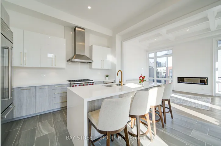 +"PublicRemarks": "Stunning CORNER 3-storey townhome with luxury finishes throughout! This spacious 3-bedroom home features a fully finished lower level with a private bedroom and full bathroom-perfect for guests or in-laws.Enjoy soaring ceilings, including an impressive 11-foot ceiling in the living room and kitchen area. Large windows throughout bring in ample sunlight, creating a bright and inviting space.The upgraded gourmet kitchen is a showstopper, complete with designer white cabinetry, a large quartz waterfall island, matching backsplash, and premium appliances including a Wolf stove, Sub-Zero fridge, and Sub-Zero wine fridge. Walk out directly from the kitchen to an oversized balcony-perfect for entertaining.Elegant details include floor-to-ceiling windows, waffle ceilings, and gas fireplaces.Spacious, sun-filled, and beautifully finished-located in an ideal, highly desirable area."