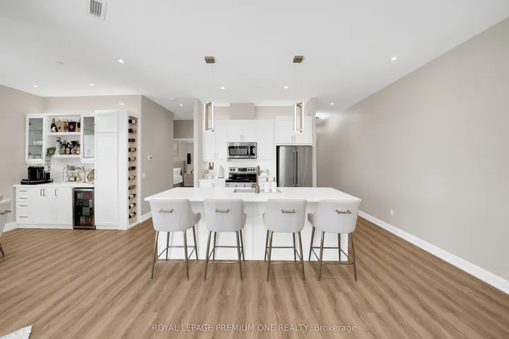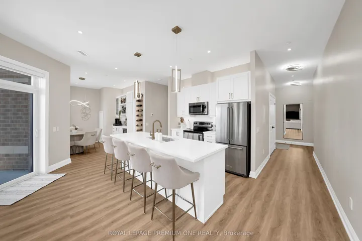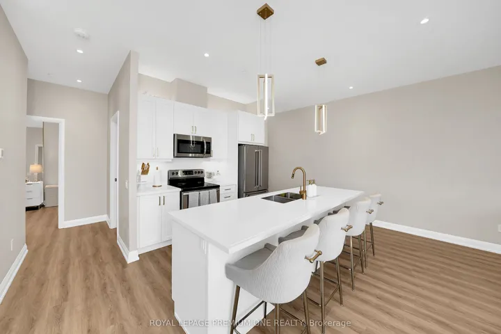 +"PublicRemarks": "Luxury Penthouse Living - Rare Corner Unit with Premium Upgrades. 1,165 sq ft penthouse suite, plus a 60 sq ft private balcony, perfectly positioned on a desirable main street-facing corner. featuring 2 spacious bedrooms, 2 full bathrooms, and 2 premium parking spots. This rare corner unit offers 10-foot ceilings, exceptional natural light, and is the only layout of its kind on each floor. The standout custom bar includes a quartz countertop, built-in mini fridge, cabinetry, pantry, and an illuminated wine rack-perfect for entertaining. Additional highlights: Custom blinds in every room + automatic patio blinds Redesigned primary bedroom layout for enhanced space and flow Unique rounded HVAC detail for a modern finish Family Room Feature Wall with mounted TV and outlets Energy-efficient Geothermal building - heat included. Parking & Storage: 2 parking spots (including VIP spot beside elevators)VIP locker conveniently located in front of one parking space Maintenance fees include both parking spots Building Amenities :Party Room, Games Room, Fully equipped Gym. Prime Location: Conveniently located across from everyday essentials including No Frills, Dollarama, and Wendy's. Close to public transit, GO station, schools, parks, shopping, and more."