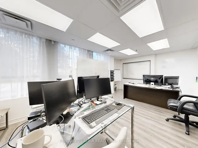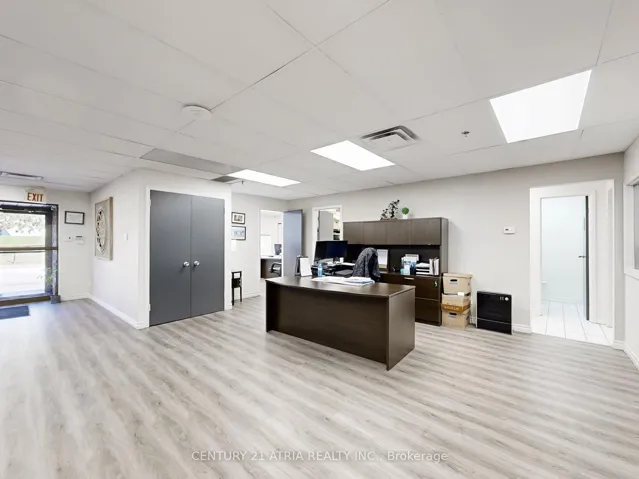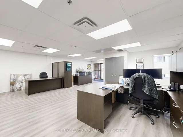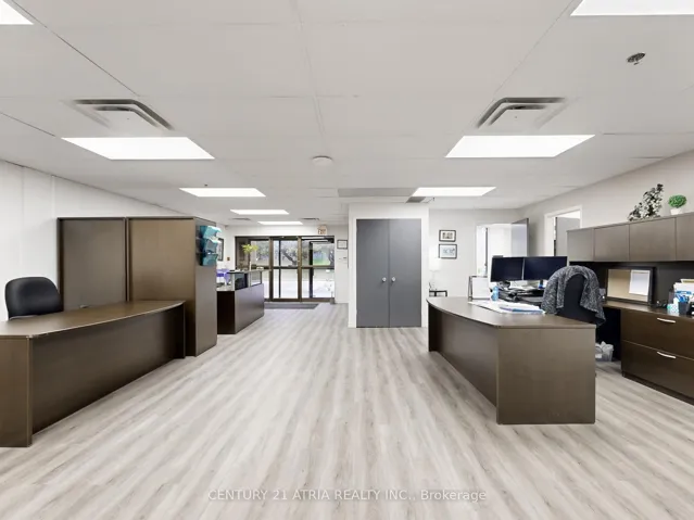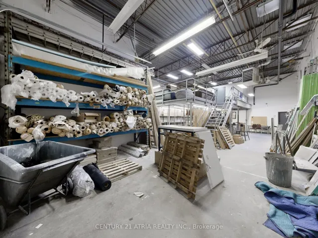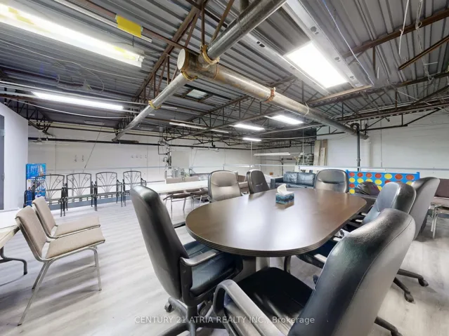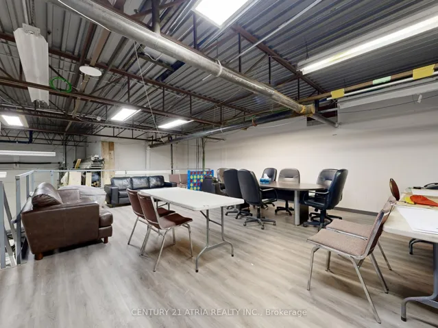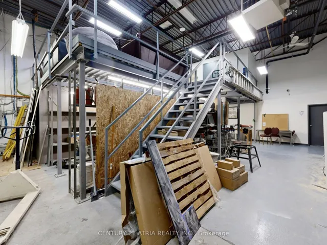 +"PublicRemarks": "Exceptional opportunity to own a professionally upgraded turnkey 3,546 sq. ft. industrial condo with 40% office and 60% warehouse. Features include a glass-encased entryway and a refined front reception area that establishes a polished, professional tone. Every office is strategically positioned with large windows allowing plenty of natural light throughout the space. The office component features four private offices, a spacious boardroom, an open-concept reception area with two additional workstations, a dedicated printer/file room, a large kitchen, and two updated washrooms with sleek modern finishes. The expansive principal executive office features large windows and striking accent wall. LED lighting is thoughtfully integrated throughout the entire unit, with recessed panel fixtures in the office areas and suspended strip lighting in the warehouse and mezzanine. The facility is equipped with a Complete Security Solutions system featuring three cameras and monitors, all included. The warehouse offers 18 ft ceilings with 16 ft clear height, a grade-level drive-in door (12 ft H x 10 ft W door), 600-volt power, its own private office, multiple storage rooms, server room, and dedicated washroom. A standout feature of this facility is the oversized 800 sq. ft. mezzanine (not included in the 3,526 sq. ft.), constructed of solid steel for long term durability. Additional highlights include four designated parking spaces, ample visitor parking, a new roof (approx. 2020), and a sprinkler system throughout the office space, warehouse, and below the mezzanine. This facility has been meticulously maintained and updated with consistent attention to all systems and overall upkeep, reflecting pride of ownership throughout. The location offers exceptional central connectivity to Toronto and the GTA, just minutes from Highway 404 and Highway 407. Convenient access to public transit is available with a TTC bus stop located at Denison and Hood Road."