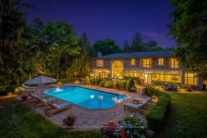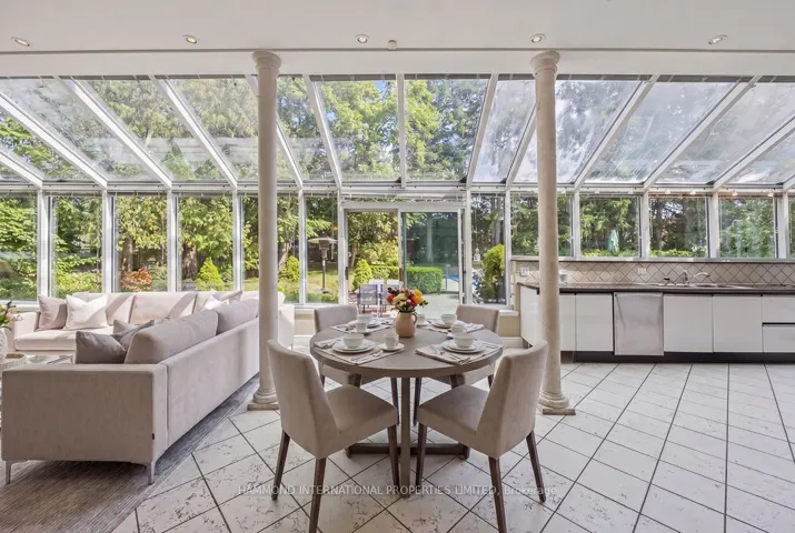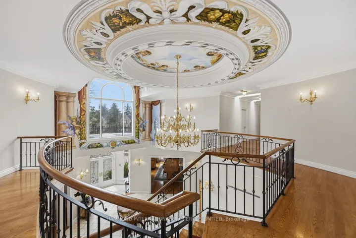 +"PublicRemarks": "A rare expression of timeless grandeur, Villa Imperium rises behind private gates in the heart of coveted Old Thornhill - set upon estate-like grounds of remarkable scale (over 7200 SF AG), privacy, and presence. Inspired by the great residences of Europe, this one-of-a-kind neoclassical masterpiece is defined by extraordinary craftsmanship seldom seen. A breathtaking arrival unfolds within a regal rotunda where double-height 20' ceilings, hand-painted Baroque murals, and a sweeping circular staircase create pure architectural theatre. Principal rooms are designed for elegance and occasion. Formal living and dining salons, each anchored by wood-burning fireplaces, evoke heritage and refinement. The luminous chef's kitchen, crowned by a vaulted glass ceiling, flows seamlessly to an expansive breakfast setting with a walkout to natures terrace.The primary suite offers dual walk-in wardrobes and a spa-inspired six-piece ensuite with vaulted ceiling. Generously appointed additional bedrooms feature walk-in closets and ensuites throughout.The lower level delivers an immersive lifestyle experience - full wet bar, home cinema, fitness studio, cedar sauna, additional bedroom, two full baths and a walkup to the verdant resort like yard .Outdoors, a shimmering pool is framed by lush, tree-lined privacy and expansive terraces - designed for grand entertaining and quiet retreat alike. A stately wrought-iron gated entrance and circular drive complete the sense of arrival.Moments to top-tier schools, elite golf clubs, fine dining, and transit. A residence without compromise. A world of magnificence awaits! **Some images in this listing have been enhanced using digital technology, including AI-assisted tools, for illustrative purposes only. Enhanced images may not accurately represent the current state of the property. Prospective buyers are advised to arrange a personal viewing to verify all details**"