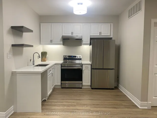 +"PublicRemarks": "If you're not up for climbing stairs to a tiny coach house and you've outgrown basement living this is your upgrade. Welcome to main-level living done right in Cornell Village. This bright, beautifully renovated 1,045 sqft flat offers something almost impossible to find in the rental market: space, light, and ease all on one level. With soaring 9' ceilings, a private front entry hall (yes, with an actual closet), and generous storage throughout, it lives more like a home than an apartment.The crisp white kitchen is equal parts stylish and functional, featuring quartz counters, open shelving, under-cabinet lighting, and stainless steel appliances including fridge, stove, and dishwasher. Wide-plank flooring flows throughout, leading into a large, airy living space that can easily flex to include a home office or cozy den - no sacrificing your dining table for a desk here. Access the large bedroom through frosted glass French doors. No shortage of daylight with two huge picture windows. The spa-like 3-piece bath with glass shower and quartz vanity adds a polished finish, while the included parking spot and easy access to transit make everyday living seamless. Upgrades throughout this glorious suite include quartz counters, smooth ceilings, pot lights, elegant 6" baseboards.Back door exits to covered back porch and parking spot. Location-wise, it's hard to beat: just steps to Cornell Community Centre (library, pool, fitness), Markham Stouffville Hospital, Cornell Bus Terminal, and everyday essentials. Only a 7-minute drive to Highway 407 and the charming shops and restaurants of Main Street Markham. A quick drive to Markville Mall. More space. More light. No stairs. No compromises."
