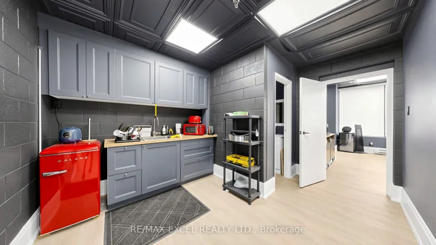 +"PublicRemarks": "Ideally located upgraded unit suitable for a wide range of uses. Flexible mixed-use layout with industrial/warehouse space and a bright front office area. Features include a drive-in door, floor drain, kitchen, generous parking, and an impressive 24 ft front window. Additional 500+sq. ft. mezzanine space (excluded from total 1,900 sq. ft.)."