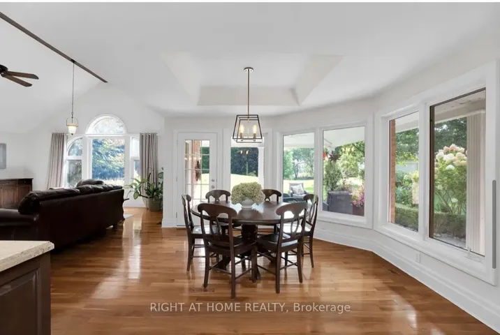 +"PublicRemarks": "Nestled on an unparalleled 3/4 acre lot in the heart of Schomberg, this beautifully maintained 4-bedroom home offers the perfect blend of space, comfort, and lifestyle. Featuring a stunning 2-storey great room with soaring ceilings and abundant natural light, the home showcases a seamless open-concept layout ideal for both everyday living and entertaining. The chef-inspired kitchen is the centerpiece, complete with a large island and walk-out to a covered loggia-perfect for indoor-outdoor gatherings. The expansive breakfast area overlooks a private, lush backyard surrounded by mature trees, offering endless potential for landscaping, recreation, or a future pool. Upstairs, the spacious primary retreat features dual walk-in closets and a well-appointed ensuite. Convenient second-level laundry adds to the home's functionality. Additional bedrooms are generously sized with great natural light. The property also includes a detached 20' x 30' garage/workshop with 10' ceilings and rough-ins for water, power, cable, phone, and gas-ideal for hobbyists or additional storage. Additional highlights include heated tiled floors and sprinkler systems for both front and rear garden beds. Located just 4 minutes to Hwy 9 and within walking distance to schools, Main Street shops, restaurants, butcher, and grocery-this is a rare opportunity to enjoy country-style living with urban convenience."