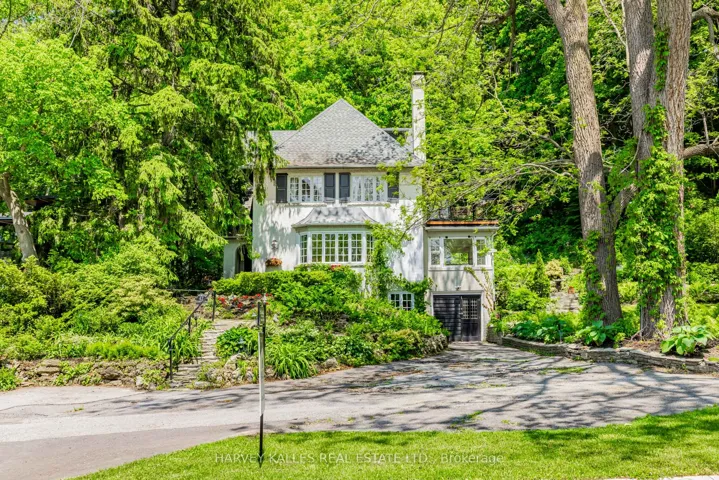 +"PublicRemarks": "Don't miss this amazing opportunity in the coveted Baby Point area! This beautiful 2.5 story home is set on an impressive 75 by 380 ft RAVINE LOT, perfectly situated in this prestigious enclave, close to the Baby Point Club and many amenities, yet still peaceful & tucked away from the busier neighbouring streets offering a Muskoka-like scenery within the city. This lovely well maintained home boasts approximately 4,000 sq ft of living space across the four finished levels. It retains the beautiful original character & charm, including unspoiled wood trim, high baseboards, wood-panelled walls and oak floors, wood-burning fireplace & stunning leaded glass windows.** ** Double car garage, extra parking in the private drive & an INGROUND POOL. **The main floor is designed for both entertaining & family life, featuring an exceptionally spacious formal living room that is anchored by a classic wood-burning fireplace and a gracious dining room, perfect for hosting family and friends. The sunny kitchen overlooks the big family room addition that serves as the home's heart, boasting soaring 10-foot ceilings and wrap around floor-to-ceiling windows that frame the MAJESTIC PANORAMIC views. Features include: Five spacious bedrooms, including a huge primary bedroom, 4 bathrooms, a main-floor office & sunroom. The renovated lower level is a true retreat, complete with a library, renovated bathroom and cedar sauna. The third floor offers lots of potential to create a fabulous primary bedroom retreat.** Short stroll to the Humber River trails, TTC, Old Mill or Jane St subway stations, excellent schools and the vibrant shops and restaurants of Bloor West Village. Join the Baby Point Club, which offers fabulous social and family activities, tennis, lawn bowling and much more. This is a rare opportunity for the discerning buyer, offering many possibilities, SPACE , PRIVACY AND PRESTIGE."