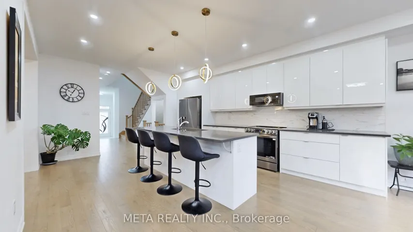 +"PublicRemarks": "Welcome to this stunning, fully upgraded 5-bedroom, 4-bathroom home built by Mattamy Homes at Lakehaven, perfectly situated on a premium, sun-filled lot in one of Innisfil's most desirable communities. Showcasing exceptional craftsmanship and modern design, this home offers 9' ceilings on both the main and second floors, oversized windows, coffered ceiling, and elegant finishes throughout.The bright, open-concept layout features a spacious kitchen with pot lights, flowing seamlessly into the dining and living areas-ideal for both everyday living and entertaining. The main floor boasts stylish tile in the front foyer, while the upper level features beautiful hardwood flooring and a convenient second-floor laundry room.Upstairs, you'll find five generously sized bedrooms, including a luxurious primary retreat with a raised boxed ceiling and a spa-inspired ensuite. A custom-designed front door and 96" interior doors throughout add a refined, upscale touch.Step outside to a fully fenced backyard oasis complete with stamped concrete surrounding the home, a gazebo, and an outdoor shed-perfect for relaxing or hosting gatherings. The property also includes a double-car garage, parking for up to 6 vehicles, and an electric vehicle charger outlet (Tesla-ready). Ideally located directly across from a park and just minutes to Innisfil Beach Park, Friday Harbour Resort, the GO Transit station, Gateway Casinos Innisfil, and Tanger Outlets Cookstown. This home offers the perfect blend of luxury, comfort, and convenience.Don't miss this exceptional opportunity to own a move-in-ready home in a thriving lakeside community!"
