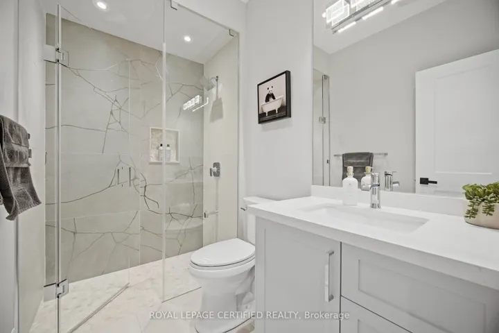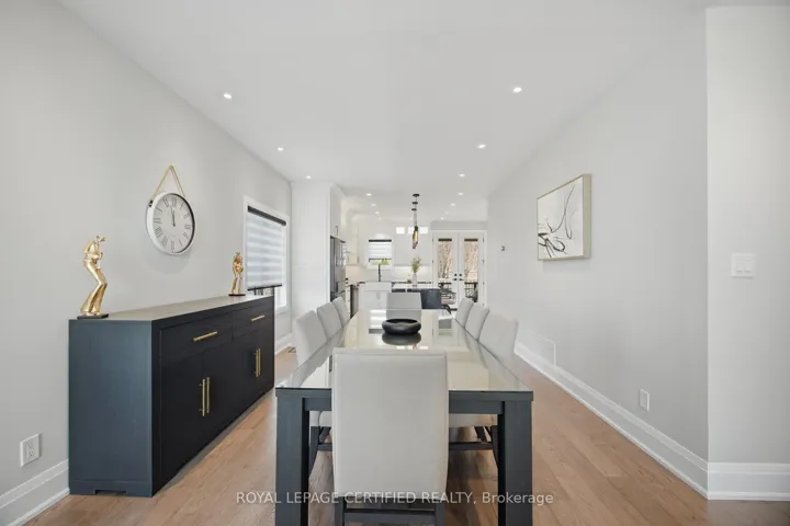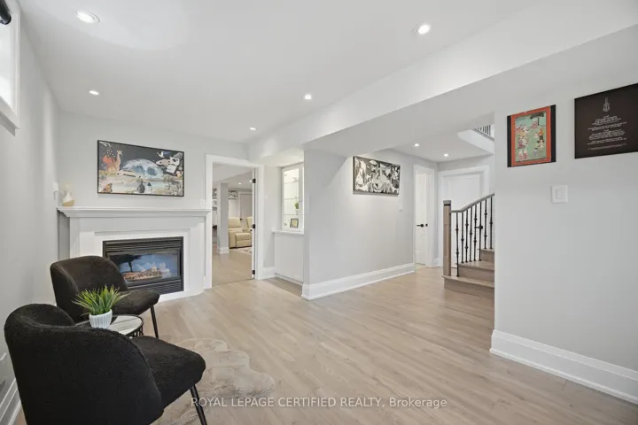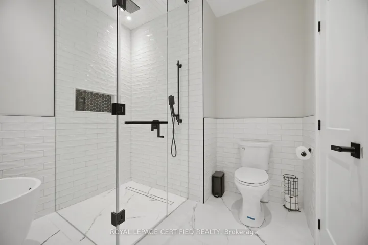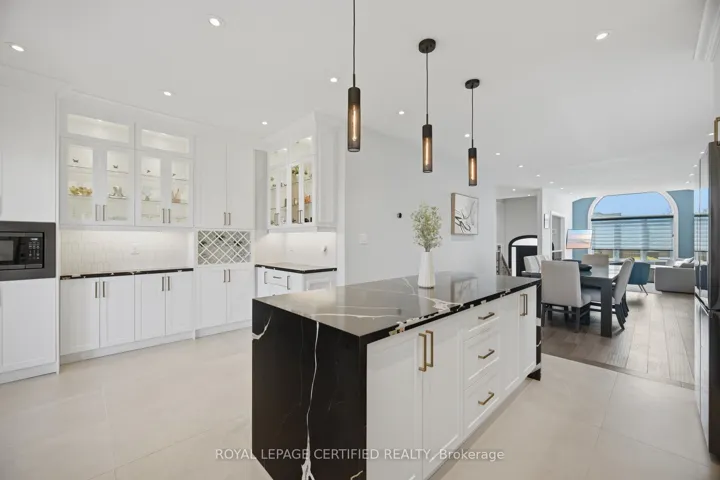 +"PublicRemarks": "Welcome to one of Claremont's most impressive custom estates, set on a private lot just under one acre at the end of a quiet court in one of Pickering's most prestigious communities. Extensively renovated with nearly $450,000 in upgrades, this exceptional residence offers approximately 8,000 SF of total living space designed for luxury, entertaining, and multi-generational living. A newly built crescent driveway accommodates up to 20 vehicles and leads to an oversized 4-car garage, creating a strong first impression. Professionally landscaped grounds, interlocking stone, and two tiers of custom decks with glass railings deliver a rare and refined outdoor setting. Inside, the main level showcases custom millwork, wainscoting, and executive finishes throughout. The oversized chef's kitchen features extensive cabinetry, premium prep space, and seamless flow into the family and dining areas, anchored by a dramatic double-sided stone gas fireplace. A standout feature is the rare main floor layout offering four spacious bedroom suites, each with its own private ensuite, ideal for extended families or multi-generational living. The primary suite includes a spa-inspired 7-piece ensuite with dual vanities, glass shower, soaker tub, and generous closet space.The finished lower level spans over 4,000 SF with high ceilings, large windows, and bright open-concept living areas. Additional bedrooms with ensuites continue the home's flexibility, while an unfinished section of nearly 1,000 SF offers potential for a gym, studio, theatre, or additional living space. Freshly painted and meticulously maintained, this move-in ready estate offers a rare combination of scale, privacy, luxury, and functionality just minutes from scenic trails, everyday amenities, Highway 407, and the Old Elm GO Station."