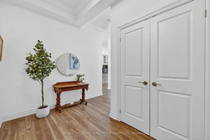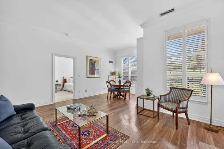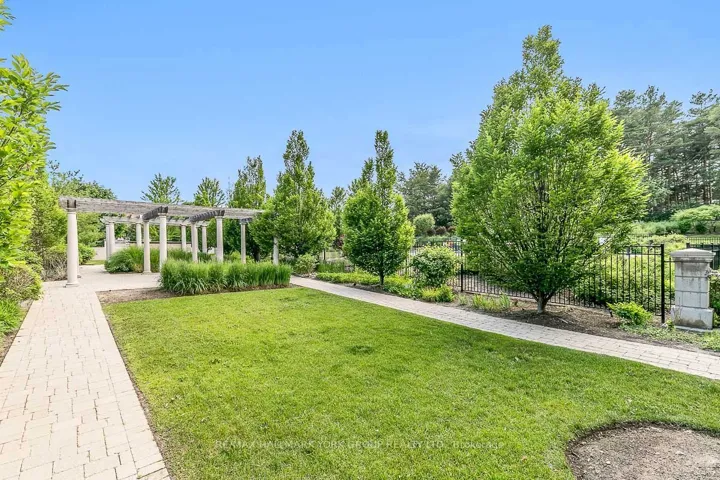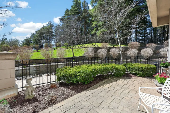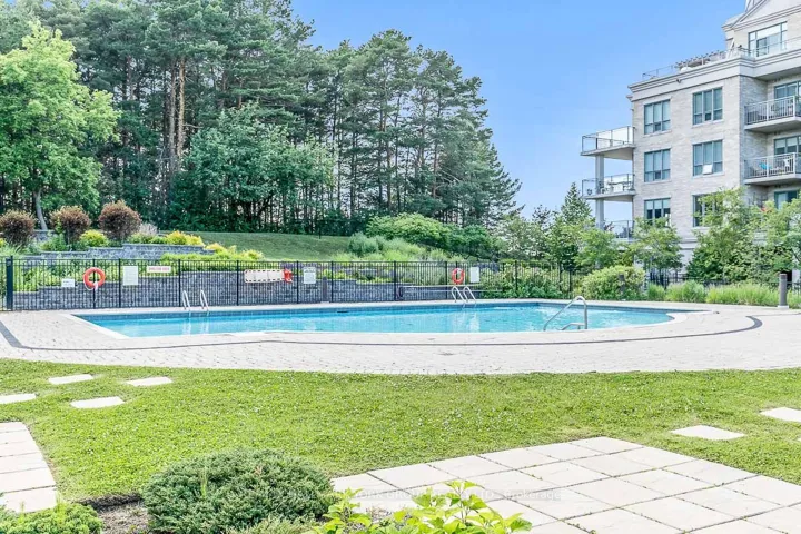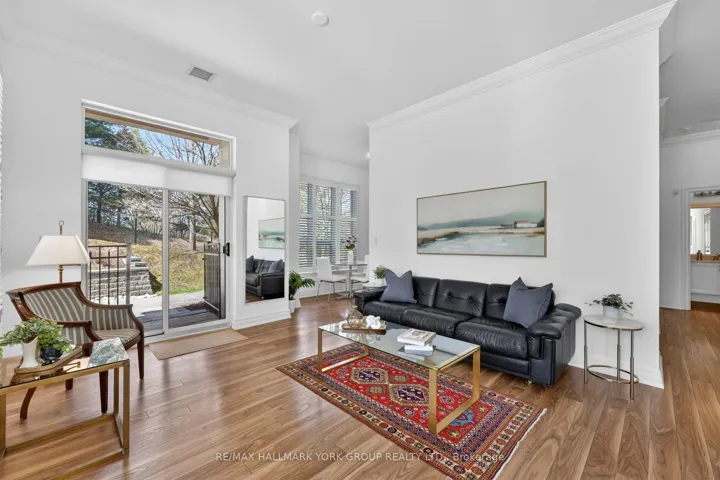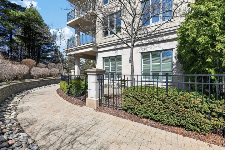 +"PublicRemarks": "Welcome to The Ridgewood - Aurora's Premier Resort-Style Boutique Luxury Residence.This exceptional southwest-facing, ground-floor corner suite (The Hollandview model) offers over 1,343 sq. ft. of bright, airy living space with spectacular views overlooking the pool, forest, and walking trails. Built by Rockport Group, designed with a townhouse-like feel, this rare unit features a private entrance-no elevator or stairs required (to enter/exit).The functional layout includes two spacious bedrooms plus a large den, soaring 10-foot ceilings and expansive southwest-facing windows that flood the space with natural light. Elegant engineered flooring flows throughout the open-concept living and dining areas. The gourmet kitchen is both stylish and functional, complete with granite countertops, Frigidaire stainless steel appliances, and ample built in custom cabinetry perfect for everyday living and entertaining. Custom cabinetry in the office (bedroom 2), dining area and bedroom closets. Over 600 sqft of outdoor living! Enjoy seamless indoor-outdoor living with a direct walkout to a huge private, fenced outdoor terrace (36' long!) surrounded by beautifully landscaped gardens-an ideal setting for relaxing or hosting in a resort-like environment.The oversized primary suite features a luxurious four-piece ensuite, offering comfort and privacy. Additional highlights include in-suite laundry, two underground parking spaces (side by side), and a storage locker. Heat, A/C and water are all included in the maintenance fee. Residents enjoy premium amenities including concierge service, an outdoor saltwater pool, fitness centre with sauna, BBQ area, party room, and guest suites for your visitors! Conveniently located just steps to the Aurora Seniors' Centre, Tim Jones Trail, GO Train, shopping, restaurants, and all of Aurora's rapidly growing amenities."