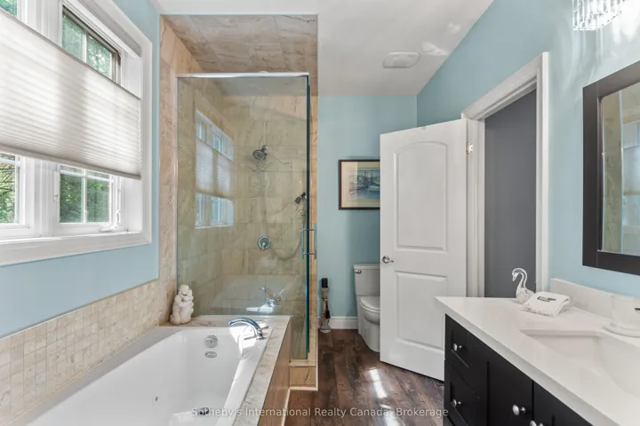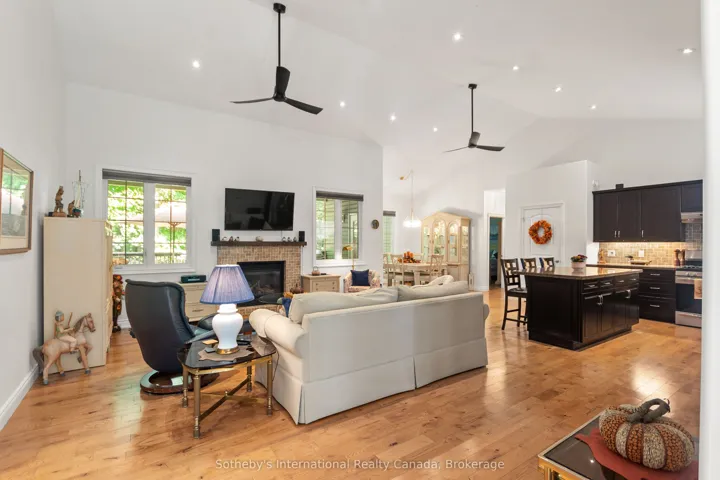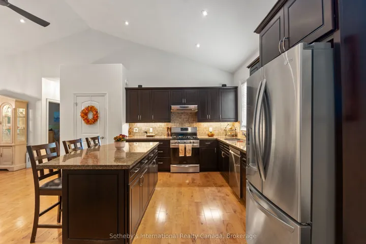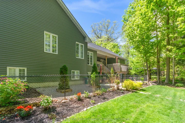 +"PublicRemarks": "New Countertops in two bathrooms upstairs, new light fixtures throughout! This beautiful raised bungalow is set on a large, landscaped lot just a 4 minute walk to the sandy shores of Georgian Bay. With 3+1 bedrooms and 2+1 bathrooms, its the perfect mix of space, function, and location. Inside, you'll find a bright, open main floor with vaulted ceilings, a spacious kitchen with plenty of storage and workspace, and a dining area that opens out to the back deck. The primary bedroom is generously sized and features a full ensuite, and there's main floor laundry for added convenience.The finished basement includes an additional bedroom, full bathroom, and a walkout to the backyard, offering flexible space for a rec room, guest suite, or home office. Additional storage and workspace can be found in the utility room, workshop or the large 2 car garage. Outside is where this property really shines. The yard is big, private, and beautifully landscaped, complete with a fire pit area and dog run, plenty of space to relax, entertain, or let the kids and pets roam. Located in a quiet, friendly neighbourhood just minutes from the water, and only 15 minutes to Penetanguishene and 20 minutes to Midland.This is a great opportunity to enjoy life by the bay with room to breathe both inside and out."