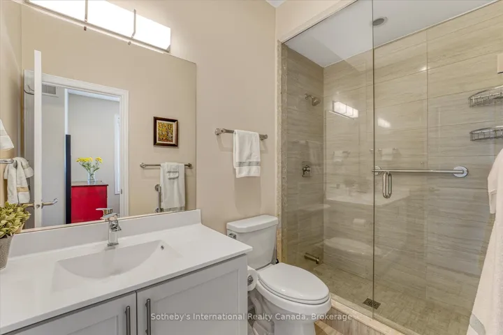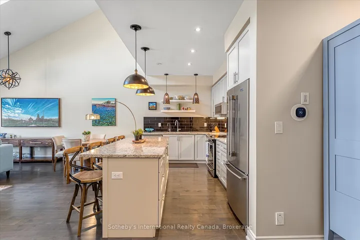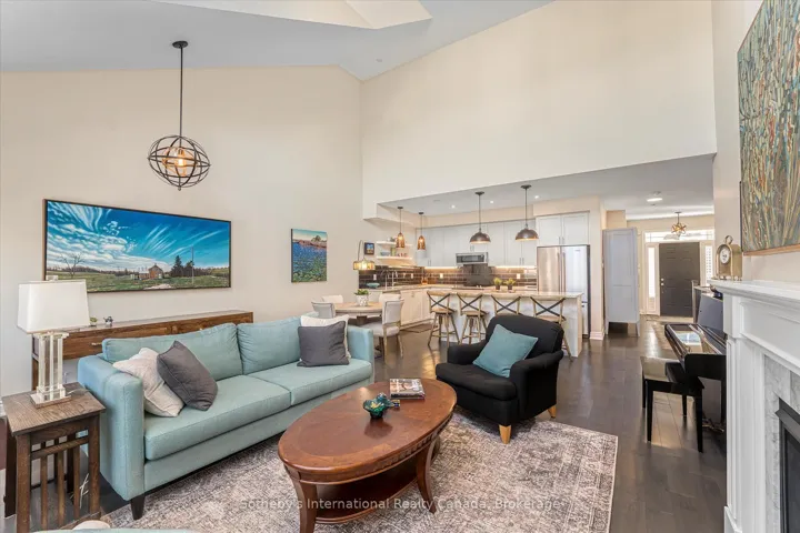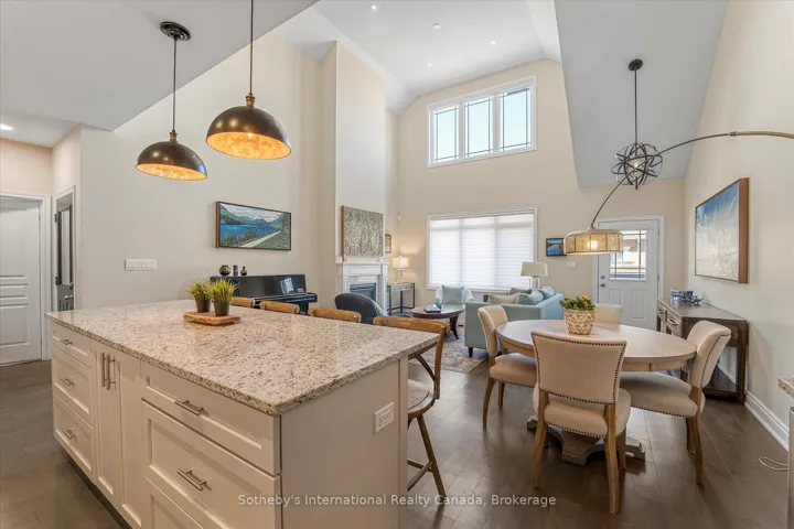 +"PublicRemarks": "Interested in an option for main floor living? Aging in place? Welcome to your next chapter in the heart of Collingwood's sought-after Shipyard's community--- the lifestyle and location will check all your boxes. Just steps from the sparkling shores of Georgian Bay and minutes from vibrant downtown shops, cafes, and trails, this beautifully appointed bungalow offers the perfect blend of comfort and convenience and the option for main floor living. The home boasts 1300 square feet on the main floor, plus an additional 450 square feet of finished space below + 700 sq ft unfinished! The main living area is bright and airy, featuring vaulted ceilings and a striking floor-to-ceiling fireplace that anchors the open-concept layout. A wall of windows draws in abundant natural light and the space provides convenient access to your private back deck ideal for quiet mornings. BBQ's and entertaining friends. Both front and rear entrances allow for easy flow throughout the home. The chef's kitchen is sure to impress, with gleaming granite countertops, a spacious 8 ft central island, and a layout designed for those who love to cook and host. The kitchen flows effortlessly into the living and dining area, creating a modern, sociable atmosphere. Main floor living is elevated with two spacious bedrooms each with its own ensuite, walk in closets and large windows fitted with custom blackout blinds for added comfort and privacy. 2nd bedroom/office has water views! Downstairs, you will find a fully finished space that is perfect as a family room, home office, or even a third bedroom, complete with a full 4-piece ensuite. An additional large, unfinished room offers plenty of storage, the opportunity to have your own workshop or expand your living space even further. A private two-car garage featuring an inside entry.Other thoughtful upgrades include remote-controlled upper window in grand room and black out blinds and enhanced soundproofing in select rooms."