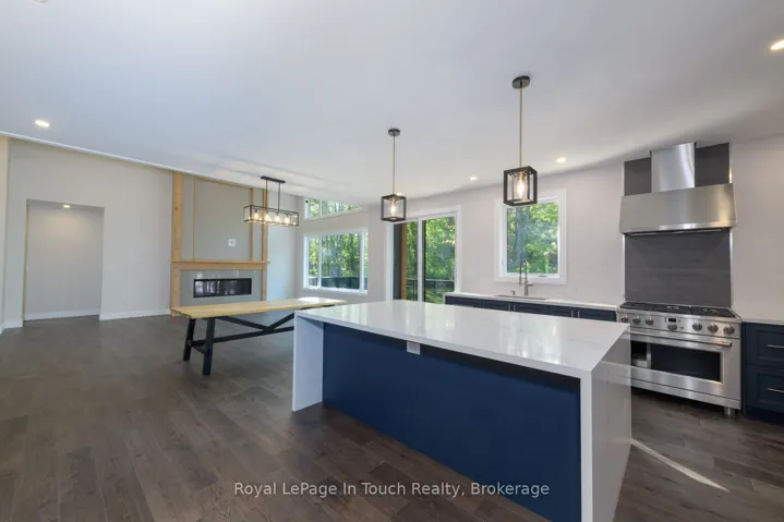 +"PublicRemarks": "Welcome to this stunning, brand new estate bungalow located in a quiet community just 5 minutes from a 36 slope ski resort and snowmobile trails. With quick highway access, you are only 25 minutes from Barrie, Midland, and Orillia and just 1.5 hours from Toronto. Designed with comfort and entertaining in mind, this new home features a spacious layout with a grand entryway, 14 ft ceilings in the great room, and 9 ft ceilings throughout the main floor. The large great room offers a cozy gas fireplace and flows into a beautifully appointed kitchen with quartz countertops, a large island, and sliding glass doors that open to a deck overlooking your private yard. The main floor also includes a luxurious primary suite with a stunning 5-piece bath featuring a soaker tub and dual-head shower, two additional bedrooms, a home office, and convenient main floor laundry. Downstairs, the finished lower level boasts 8 ft ceilings, a large rec room with a gas fireplace, a wet bar with wine fridge perfect for entertaining and an additional bedroom and second office. A separate entrance through the oversized garage adds convenience and flexibility, with plenty of space for all your toys and gear. This exceptional home offers the perfect blend of luxury, functionality, and location ideal for enjoying four-season living close to nature and city amenities."