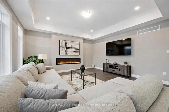 +"PublicRemarks": "Beautiful fully bricked 2-storey home situated on a quiet cul-de-sac, featuring 4 bedrooms and2.5 bathrooms. Modern kitchen with custom backsplash, waterfall island, and quartz countertopsin the kitchen and all bathrooms. Functional layout with separate living, dining, and familyrooms. Highlights include 9-ft ceilings on the main floor, fireplace, pot lights, oak staircasewith iron spindles, and hardwood flooring on the main level and second-floor hallway.Double-door entrance, double-car garage, and a rare 4-car driveway with no sidewalk. Unfinishedlookout basement offers excellent future potential. Must-see home."
