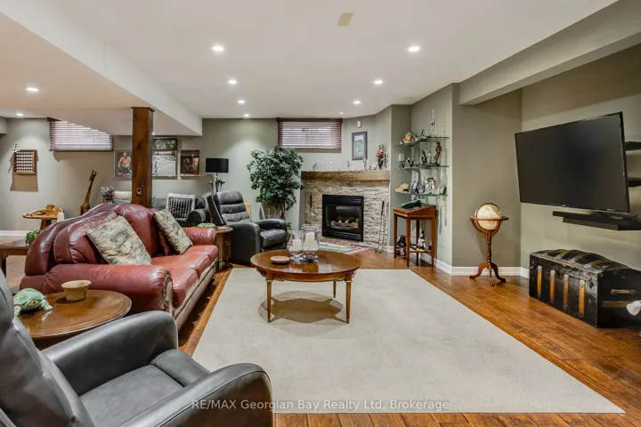 +"PublicRemarks": "Stunning property set on a beautiful lot surrounded by nature. From the moment you step inside this open concept home you will notice the bright, natural light. Features include a large open dining room open to the living room with gas fireplace and walk out to the back deck; expansive kitchen with extensive cupboards and counterspace; long bar counter for extra seating; separate breakfast nook; spacious master bedroom with full ensuite and walk-in closet. The professionally finished bright basement is perfect for entertaining family & friends that features high ceilings; high end laminate flooring; gas fireplace in family room; recreation/bar area; another extra bright bedroom, full 3 pc bathroom, bonus room, and workshop/storage area. The attached oversized wide & deep 2 car garage has an inside entry. The huge driveway can accommodate at least 6 cars. Expansive back and side deck perfect for your morning coffee with a gas hookup for BBQ. Private, wooded backyard with firepit area and garden shed. All located in the desirable area of Whippoorwill, within 5-minute drive to Midland & Penetang for shopping & restaurants. Short walk to many walking trails. This home shows very well!"