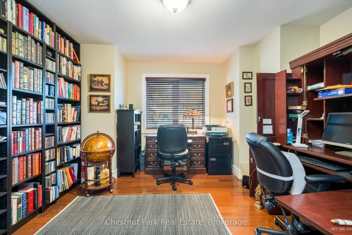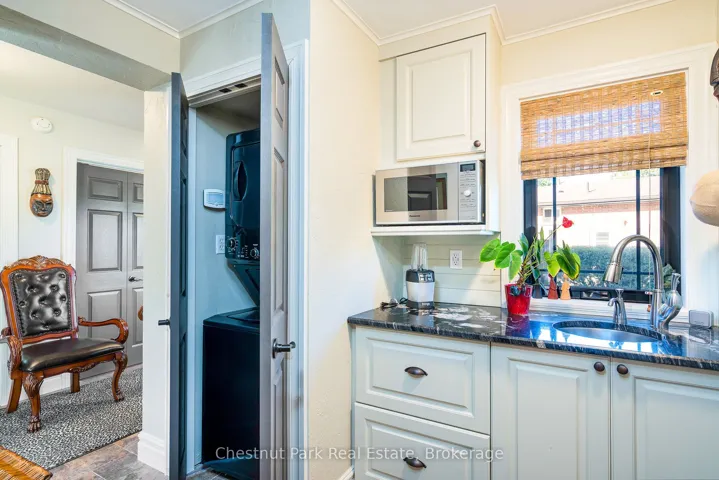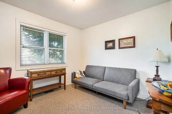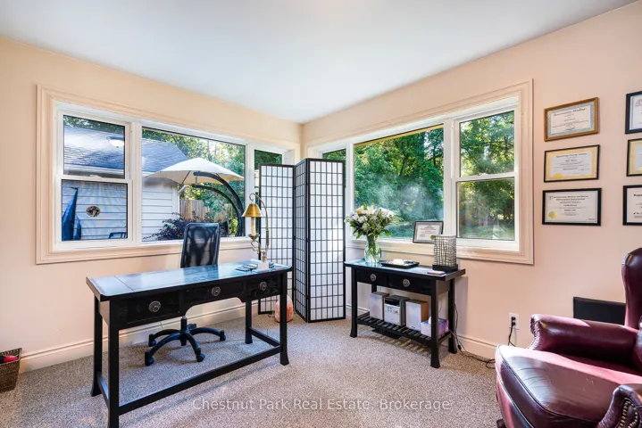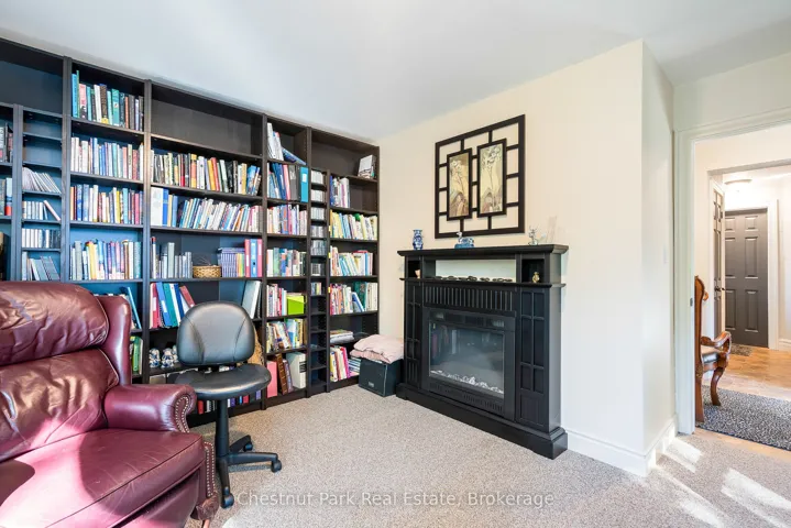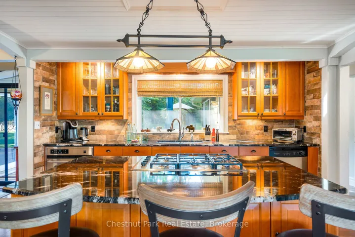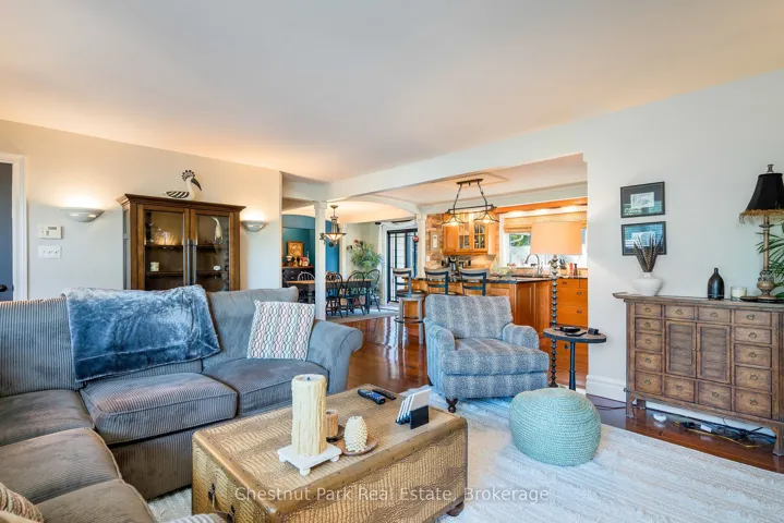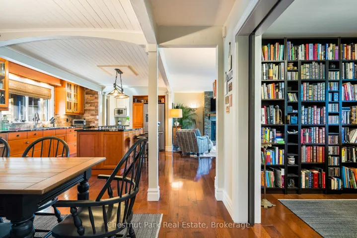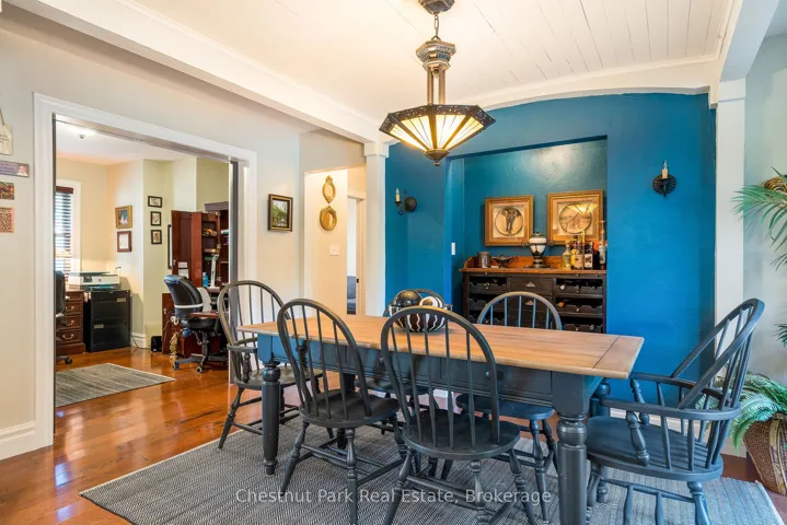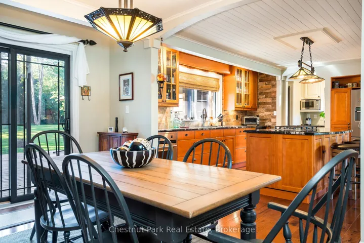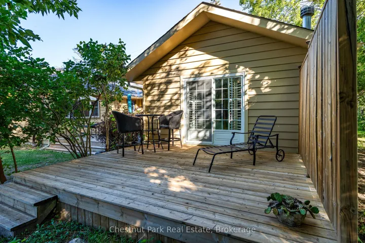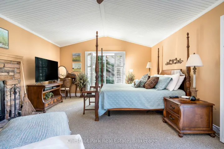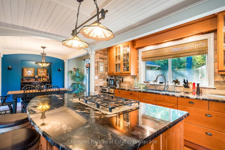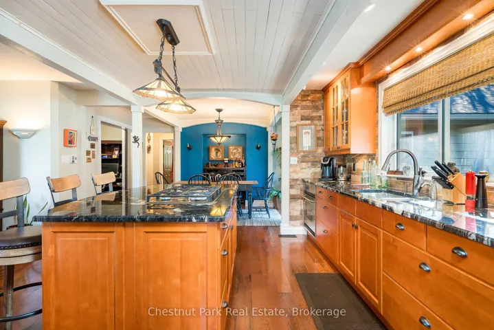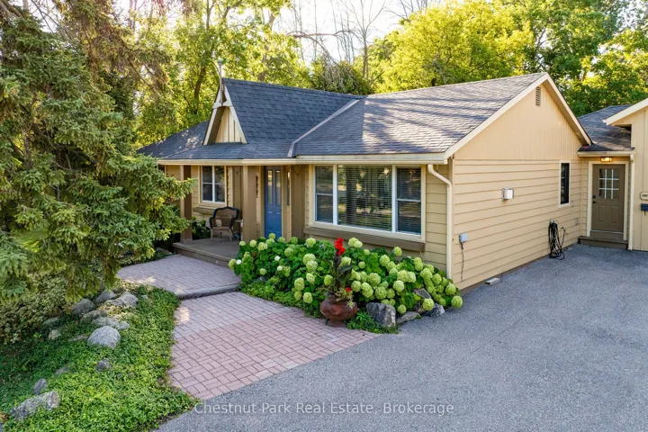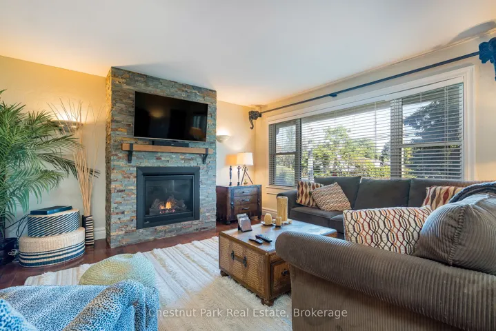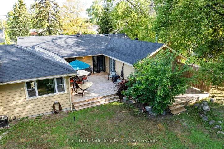 +"PublicRemarks": "Welcome to this immaculate bungalow in the heart of Collingwood, offering 1,891 sq.ft. of beautifully finished living space, 3 bedrooms, and 2 bathrooms. Perfectly located, you can stroll to downtown for dining and entertainment, with both elementary and high schools close by. Set on a generous lot surrounded by mature trees, this home features an extra-large backyard just waiting for your landscaping vision-whether its a pool, gardens, or a custom outdoor retreat. Two separate decks provide options for entertaining, morning coffee, or quiet evening relaxation. Inside, the open-concept layout blends a gourmet chefs kitchen, complete with a gas cooktop and large centre island, into the dining and living areas. A pantry/coffee station and clever laundry closet add convenience. The inviting living room, with a gas fireplace, is the heart of the home on chilly winter nights. The primary suite is a private sanctuary with a vaulted ceiling, wood-burning fireplace, two walkouts to separate decks, double closets, and a 3-pc ensuite. Two additional bedrooms (one currently used as an office) and a full guest bath offer flexibility for family or visitors A dedicated office with pocket doors makes working from home a breeze. Practical touches include a mudroom with inside garage entry and an oversized 1.5-car garage with workshop/storage space-ideal for paddleboards, kayaks, golf clubs, or seasonal gear. All of this just minutes from the Collingwood marina, grocery stores, and a 20-minute drive to Thornbury's restaurants and shops. Whether you're raising a family, downsizing, or looking for a weekend escape, this home offers comfort, convenience, and endless potential."