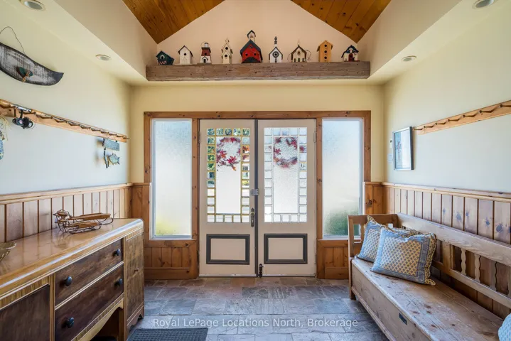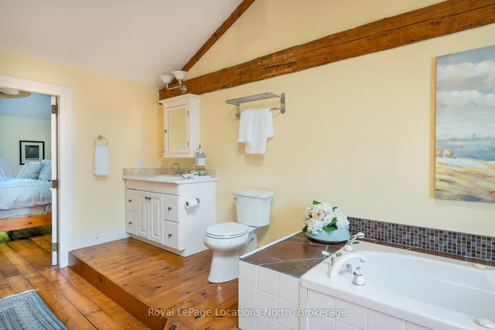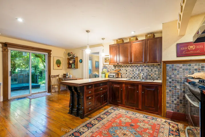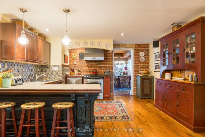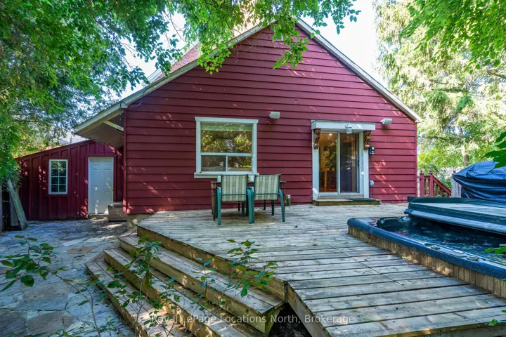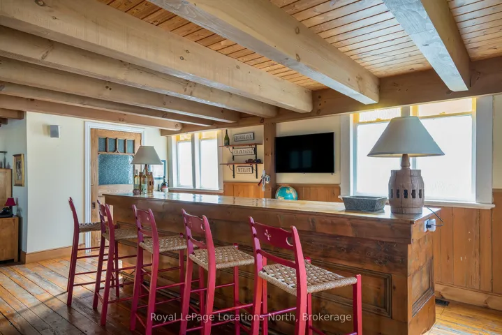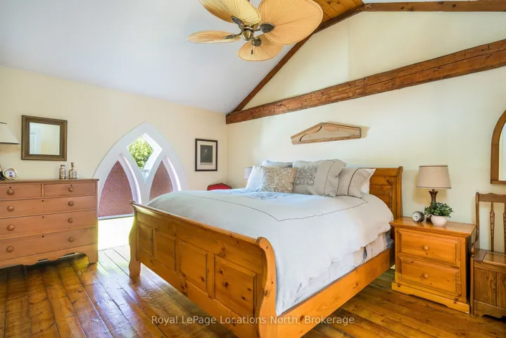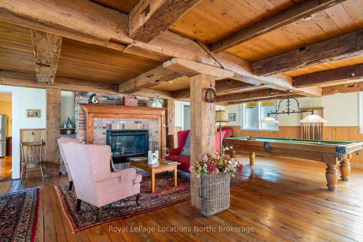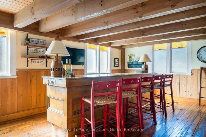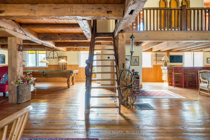 +"PublicRemarks": "When you step inside this unique, renovated 1897 church, you can't help but imagine the fabulous holidays your family and friends would enjoy here. On the main street of the charming village of Nottawa, this is a home meant for gathering. This rare opportunity is absolutely full of thoughtful touches and decor lavished on it by its current owners, and all those touches are included in the sale. Furnishings, linens, rugs, art, lamps, antiques, even the dishes, all come with the house so moving in will be easy. Your family will enjoy the restful and restorative atmosphere of the main floor with the soft light of stained glass. The sprawling living space under post and beam cathedral ceilings has a chalet like feel. It features a primary seating area in front of a wood burning fireplace with a wonderful long and welcoming bar for entertaining. The bar itself was recovered from an old general store. An adjoining space houses another seating area in front of a gas fireplace and a large billiards table. The dining table seats 14 so no card tables will be necessary. Each space is wide open yet beautifully defined with a combination of historic details and new improvements. You will have room for all your guests in the five upstairs bedrooms, all stylishly decorated and all enjoying the comforting glow of stained glass windows.The main floor den has a pull out sofa bed and an ensuite bathroom for additional sleeping quarters. It is a home to wander in, explore, and bask in its warmth and coziness. Outside, a large backyard deck allows space for an oversized bbq and an enormous hot tub, all under a beautiful canopy of mature trees. Multiple sheds for storage and potting make maintenance easy -- and even the garden equipment is included."