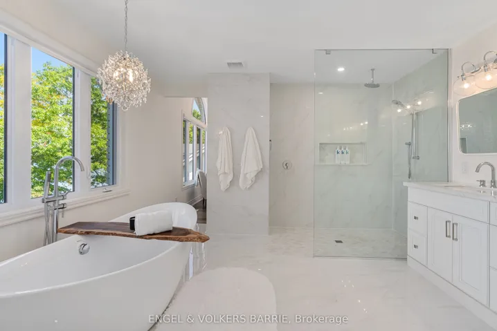 +"PublicRemarks": "Welcome to 376 Brewery Lane, a stunning luxury waterfront home situated on one of Orillias finest streets. This exceptional property offers 104 feet of prime Lake Couchiching frontage on a beautifully landscaped half-acre lot with western exposureperfect for soaking in spectacular sunsets and views of downtown Orillia. Completely renovated from top to bottom, this home offers nearly 5400 square feet of high-end living space, featuring 5 bedrooms and 4.5 bathrooms. The gourmet kitchen is a showstopper with two impressive 10-foot islands, granite countertops, and premium appliances from WOLF, SUBZERO, and Thermador. The open-concept main floor boasts large windows that frame lake views, a cozy gas fireplace in the living room, and a walkout to an expansive deckideal for both relaxation and entertaining. The upper level features 3 spacious bedrooms, each with its own ensuite, and a laundry room for added convenience. The primary suite is a true retreat with vaulted ceilings, a grand walk-in closet complete with built-ins and an island, and a spa-like ensuite featuring a walk-in shower, soaking tub, heated floors, and double vanity. The finished walkout basement offers 9-foot ceilings, a second full kitchen, separate laundry, and a private entrance, making it perfect for extended family or guests. Outside, the property truly shines with a heated saltwater pool surrounded by interlock patios, multiple seating areas, and a large dock complete with sea doo lifts. The private stone path leads to a hard-packed lakefront, perfect for enjoying summer days by the water. Double gated entries and a heated interlock driveway provide both privacy and convenience. This rare waterfront gem is located at the end of a quiet court, offering tranquility and luxury living."