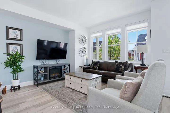 +"PublicRemarks": "Move in ready. Start enjoying a beautiful home and lifestyle. All outdoor maintenance is managed by condo corp. Snow removal and grass cutting and more. SEMI-DETACHED condo home, Single garage, One extra parking, Fully finished basement. So many upgrades. Easy car access to front, side and rear of home. 9 FOOT CEILINGS on main and upper level. Stunning kitchen with soft close cabinetry, QUARTZ countertops. PANTRY on main floor by kitchen. 33 inch LG stainless steel fridge with outside water and ice dispenser. GE Dual Fuel/Double oven 30 inch stove. High end Samsung front load washer & dryer. Primary bedroom with 3 piece shower ensuite on main level. 2 piece washroom on main level. All windows coverings including remote control blinds in great room. 100% oak stairs leading to basement, Natural gas at rear patio for BBQ hookup. Condo fees include snow removal, grass & tree maintenance, window cleaning, replacement of windows, roof, patio. home exterior insurance. Basement is finished for a cozy TV & games room. Storage, laundry room and 2 piece washroom. Upstairs is an office, 2nd bedroom, 3 piece washroom. Come and take a look. Close to Little Lake, Georgian Bay, major stores, LCBO, restaurants, Theatre, Bike trails, town dock, arts centre, parks, place of worship, hospital, library, sports centre and more. Book your showing today."
