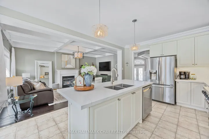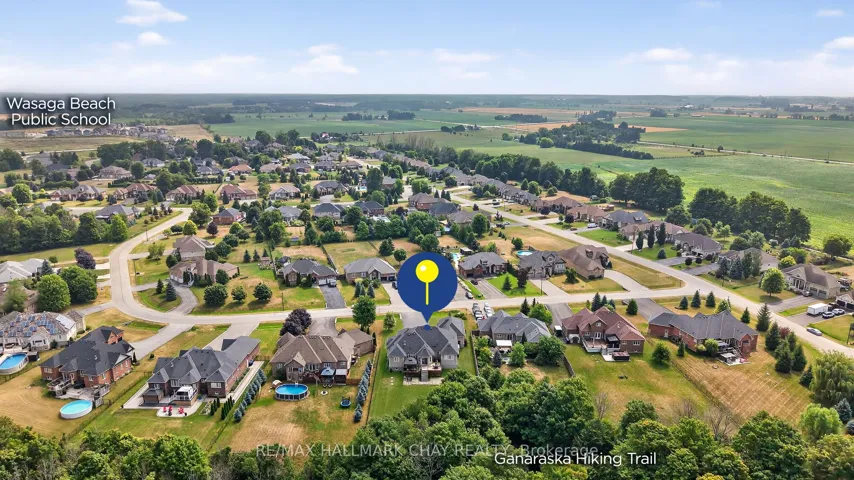 +"PublicRemarks": "Step into this impressive raised bungalow in Wasaga Beach's prestigious Wasaga Sands Estates, set on a rare ravine lot surrounded by expansive estate properties. Offering over 2,500 sq ft on the main floor, this remarkable residence boasts incredible curb appeal, dual entrances, and a massive driveway leading to a spacious three-car garage. The backyard is a private retreat featuring an oversized deck and patio with picturesque views of Macintyre Creek and tranquil trails. Inside, you'll find refined details such as wainscoting, hardwood floors, and 8-inch cornice moldings. The family room is enhanced by a beautiful coffered ceiling and fireplace, while the kitchen shines with quartz countertops and a premium Viking stove. The open-concept layout flows effortlessly to the backyard, perfect for entertaining. The primary suite is complemented by three additional bedrooms, one of which serves as a versatile space ideal for an office, or nursery. A practical mudroom offers easy access to the garage and second entrance. With 9' ceilings throughout, ample natural light, and an unfinished basement featuring 10' ceilings and a bathroom rough-in, this home presents endless opportunities. Enjoy peaceful living just minutes from shops, restaurants, the beach and Blue Mountain resort. 9ft Ceilings on Main, Hardwood Floors, Newer Carpet In Bedrooms, Mud Room With Man Door To Garage & To Front Entrance, Elegant Wainscotting Throughout, Walk In Pantry, Coffered Ceilings, 8" Cornice Molding, 10ft Ceilings In Bsmt & Above Grade Windows, Quartz Counters, Double Deck, Backing Onto Macintyre Creek +Trails."