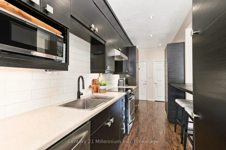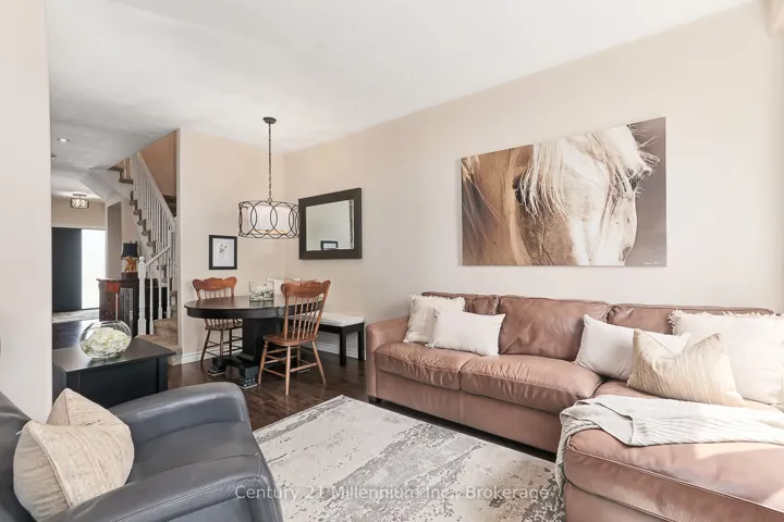 +"PublicRemarks": "Discover an exceptional opportunity in Collingwood's highly sought-after Mair Mills community: a beautifully renovated freehold townhome with no condo fees! This property blends modern comfort with a prime location, boasting sunny southern exposure and directly backing onto the serene 6th hole of the Blue Mountain Golf Course. Step inside to a thoughtfully updated interior featuring an open-concept kitchen and living room, a cozy fireplace. Patio doors effortlessly lead to a beautifully landscaped yard, creating a seamless indoor-outdoor flow perfect for entertaining or relaxing. Significant upgrades, including a new hot water heater (2021), A/C unit (2022), and new front and back doors (2022). Upstairs, the large primary bedroom provides a private retreat, complete with a walk-in closet and en-suite bathroom. It also features a guest suite with a den, thoughtfully created by combining two original bedrooms. This space now offers a comfortable sleeping area seamlessly integrated with a dedicated den, ideal for a home office, quiet reading nook, or creative pursuit with a recently renovated main bath (2024). The fully finished basement features a cozy rec room with an electric fireplace, storage space, a rough-in bathroom, and a laundry room complete with a convenient dog wash station. Outside, your private backyard oasis awaits. Enjoy the sheltered 20 x 14 patio area, easily accessible from the dining area or garage, perfect for outdoor gatherings and relaxation. Beautiful landscaping (completed in 2021) surrounds a spacious deck. Unwind in the hot tub or utilize the two storage sheds for all your gardening and outdoor equipment. The oversized, attached double-car garage is a true highlight, boasting 10-foot ceilings and is both insulated and heated. Mair Mills is a vibrant, family-friendly community offering a children's park and fenced tennis courts-minutes to Blue Mountain Village."