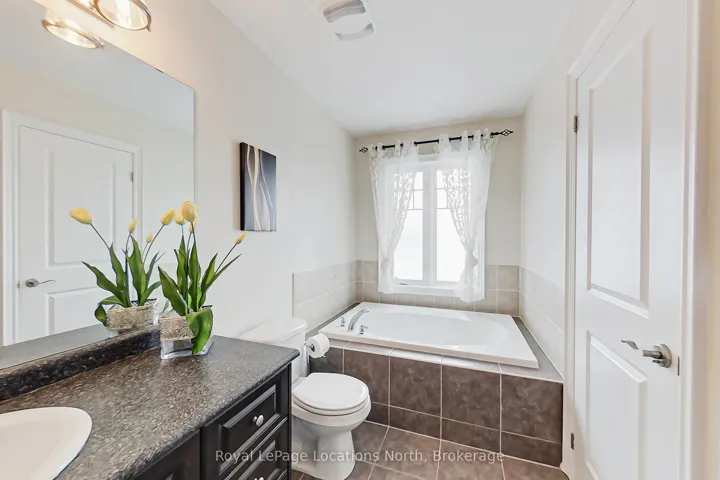 +"PublicRemarks": "Well - appointed 1902 sq ft Townhome with significant upgrades including granite counter tops in new kitchen. Walk-out to balcony from kitchen, with views of ever-changing sunsets. Living room has a gas fireplace and an outdoor balcony. Master bedroom has en-suite and walk in closet. Huge double garage (24'10" x 17'2") with room for 2 cars plus tools and storage. Parking for 4 cars, plus visitor parking nearby. The ground level bedroom can be converted to a home office. hardwood floors on 2nd level. Smoke and pet-free home. Gas hook up for BBQ Stonebridge by the Bay is an active and caring community with a recreational lifestyle and plenty of social activities. Common Elements include shared use of salt water pool, Zen Garden and waterfront beach house. Snow clearing on a private road. Good walk score to nearby services and just a 5 minute walk to Walmart. Easy access to beaches and golf courses. Short drive to Collingwood, Blue Mountain and Barrie."