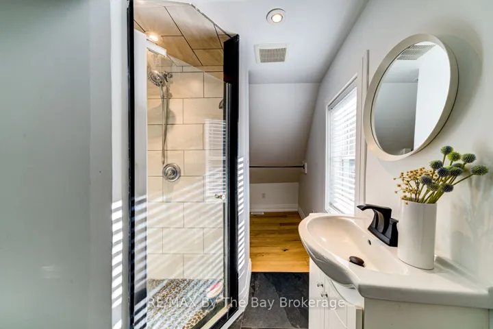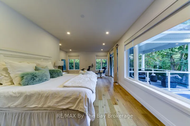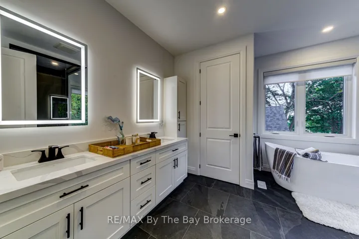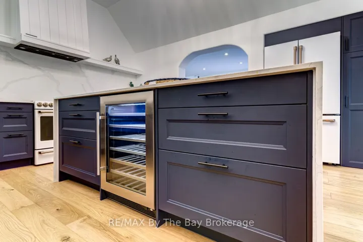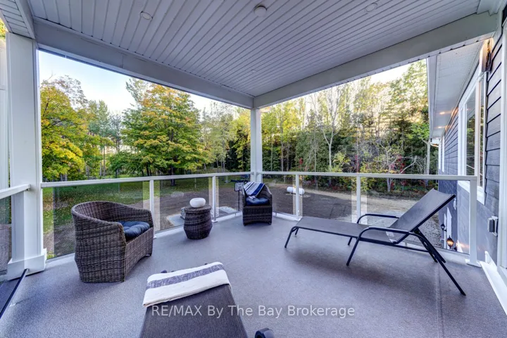 +"PublicRemarks": "Private Luxury Country Estate Retreat on 2.1 serene acres in Clearview Township. Where refined living meets natural serenity. Surrounded by mature trees and picturesque views of shared and private ponds, this breathtaking property offers 4,500 sq ft of exquisitely finished living space and timeless architectural charm. Located on the south side of Poplar Side Road, on the Collingwood townline and within the sought-after Nottawa public school district, the setting is both secluded and convenient.Originally built in 1900, the home has been masterfully expanded with a 3,500 sq ft custom addition. A sweeping circular oak staircase greets you in the grand foyer, while engineered white oak floors and heated Brazilian slate tile add warmth and elegance throughout. Large casement windows bring in natural light and capture stunning views of the grounds.The custom kitchen (2025) features quartz waterfall countertops, Café appliances, a farmhouse sink, custom hood, and a walk-in pantry with a second sink, dishwasher, and ample storage. With four bedrooms and four bathrooms including two private ensuitesthe home is perfectly suited for both family living and entertaining. The primary suite offers a spa-like bath, walk-in closet, and private covered terrace with tinted glass railing and propane hook-up. Additional highlights include: Four-season sunroom with heat and A/C Sound-insulated office with private entrance and porch Third-floor observatory with panoramic windows. Second-floor bonus room off of the large living area has wet bar rough-in and deicated circuts for bar fridge and ice machine to easily turn into the ultimate entertainment room. In-floor heating in foyer, baths, Oversized 3-bay garage with EV outlet and heater rough-in Smart lighting, 16-camera security, spray foam insulation New well (2021) and septic (2024) Hardie board and stone exterior with soffit lighting. An exceptional country estate where craftsmanship, comfort, and natural beauty come together."