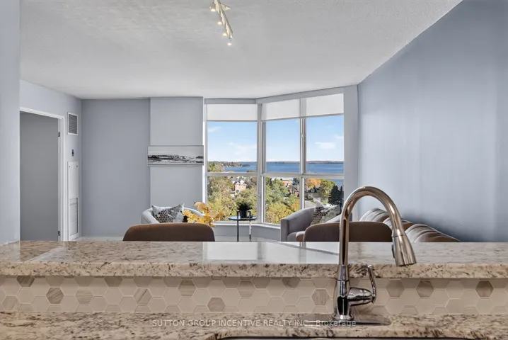 +"PublicRemarks": "Check out this totally upgraded suite. Freshly painted with newer floor. Granite counters in kitchen, glass and stone mosaic backsplash, stainless steel appliances, stove with ceramic top. Open pantry area provides more kitchen storage . Spacious renovated bathroom area with quartz stone top vanity. Walk in shower with upgraded tiles and rain shower system. In suite laundry w/stainless steel stackable washer/dryer. Master Bedroom is huge with closet built ins and mirrored doors. Den/dining area with Juliette balcony. The views are remarkable from spacious living/dining room area. This truly is "turn key" unit. One underground parking spot and massive double sized locker (10ft 10 inches long X 5.5 ft wide) . Condo fees include heat, hydro, water, building insurance plus use of all the amenities. A beautiful bright indoor salt water pool with hot tub & sauna. Great exercise room with plenty of equipment. Need to host a function? Party Room available with kitchen area. Plenty of Visitor parking on site. Underground car wash to use at your convenience too. Located in Barrie's downtown, across the road from miles & miles of walking & cycling trails. Fine restaurants, Shops, Farmers Market, Library, Art Gallery, Salons, Churches, Public Transit, Marina, the list goes on to all the amenities at your finger tips. Must view to appreciate."