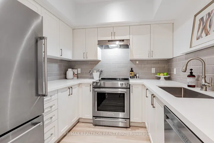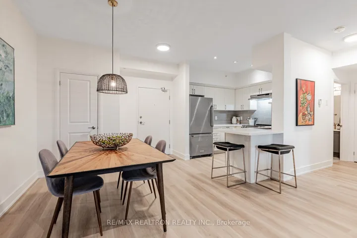 +"PublicRemarks": "Stylish Designer Condo at The Louvre in the Gallery. 2 Beds | 2 baths | 2 parking spots | Forest view patio Immaculate and move in ready, this beautifully updated condo offers style, comfort and convenience in one of Barrie's most desirable communities . Enjoy a spacious split-bedroom layout -- ideal for guests or shared living-- with 9 ft ceilings, new white Caesarstone countertops, luxury vinyl plank flooring (Sept. 2025), pot lights, California shutters and 5 1/2" baseboards for a fresh modern look. Both bedrooms are bright and generous with large windows and ample closets. The primary suite includes a private ensuite, while in-suite laundry adds everyday convenience. Relax on your private ground -level patio with serene forest views and fenced green space -- perfect for entertaining or pets. Includes two parking spots, a locker, and access to a rooftop patio. Just 2 minutes to Hwy 400 and close to shopping, transit, and local amenities, this home offers the perfect blend of modern living and natural tranquility--welcome to The Louvre at The Gallery."