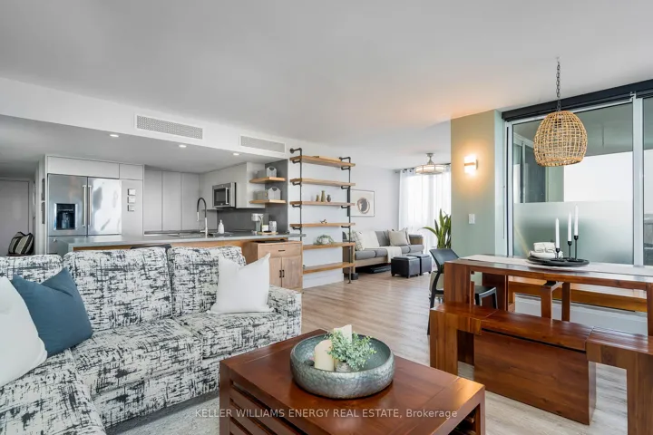 +"PublicRemarks": "Welcome to the lifestyle you've been waiting for in Collingwood's prestigious Rupert's Landing. If you're ready to leave behind the hustle of city life - but not your love of style, space, and connection - this rarely offered 2-bed, 2-bath corner suite in one of Collingwood's premier gated waterfront communities is the perfect match. Perched on the 9th floor of Bayview Tower, this light-filled 1,300 sq ft residence offers panoramic views of Georgian Bay and the Niagara Escarpment, including front-row seats to Blue Mountain's seasonal fireworks from your private covered balcony. Inside, discover design that feels both elevated and effortlessly livable. Floor-to-ceiling windows flood the open-concept living, dining, and den spaces with natural light. The chef's kitchen features quartz waterfall counters, stainless appliances, custom cabinetry, and a built-in beverage centre. Whether you're entertaining or relaxing by the gas fireplace, every detail has been thoughtfully curated. The spacious primary suite includes modern built-ins, a designer feature wall, and a renovated 3-piece ensuite with walk-in shower and double-sink vanity. The second bedroom is bright and versatile-ideal for guests or a stylish home office. A generous foyer, in-suite laundry, and ample storage complete this refined, maintenance-free home. Enjoy access to an exclusive recreation centre with indoor pool, sauna, gym, racquetball court, tennis/pickleball courts, and a private marina with direct bay access for kayaking and paddleboarding. Minutes to Downtown Collingwood's boutique shops, restaurants, golf, trails, and ski hills, plus the year-round resort amenities of Blue Mountain. Collingwood is celebrated as a four-season playground on the shores of Georgian Bay-offering an unmatched blend of nature, community, and comfort. Don't miss this rare opportunity to experience waterfront living at its finest."