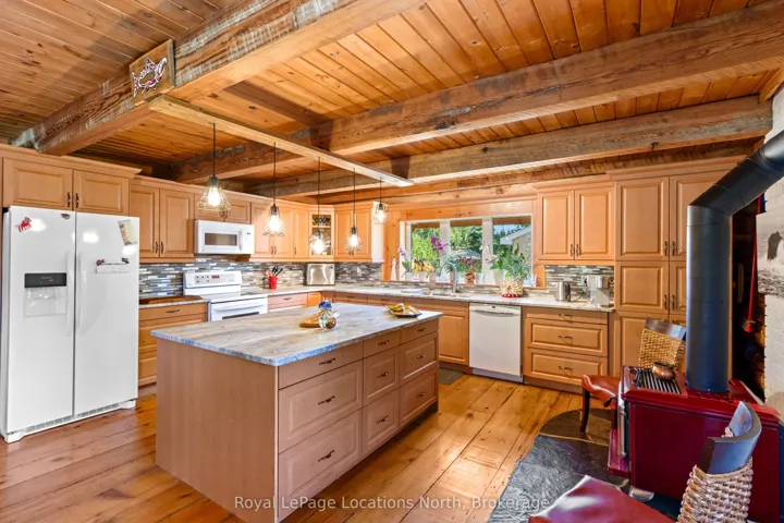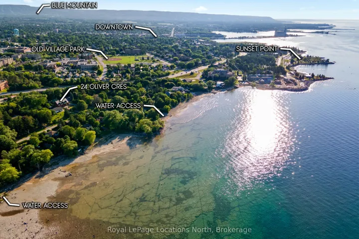 +"PublicRemarks": "Welcome to 24 Oliver Crescent, a charming log home nestled on a spacious 120 x 225 lot backing onto the tranquil Pretty River. This unique property offers the warmth and character of log construction combined with modern comfort, including efficient geothermal heating, Pine floors, Aluminum roof and modern finishes throughout. The spacious main floor provides lots of space to entertain with a large living room (19'10X29ft) and a kitchen you can spend hours in with Island and spacious Dining area for the entire family to enjoy. With 3 spacious bedrooms upstairs including a large ensuite with walk-in glass shower and 2 additional bedrooms in the lower level, there is room for the whole family or the potential for multi generational living with a completely separate side entrance into the lower level. The basement features its own kitchen area, making it ideal as an in-law suite or guest space. Enjoy the cozy ambiance of three wood-burning fireplaces throughout the home, located in the kitchen, living room, and lower-level family room. Surrounded by nature and just steps to Georgian Bay and minutes to downtown Collingwood and area trails, this is a rare opportunity to own a peaceful retreat with all the conveniences of town nearby. Other bonus features include the large paved driveway, detached shop, sun room out back, private backyard and the furnace was replaced in 2021. This home is ready for you."