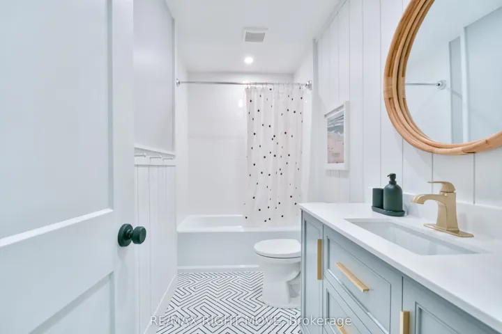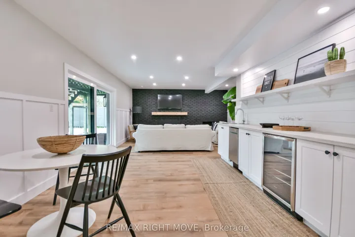 +"PublicRemarks": "Welcome to 407 Bay Street, Orillia - located in one of the city's most desirable neighbourhoods. This stunning custom-built 5-bedroom, 3.5-bath, two-storey home showcases exceptional craftsmanship, modern design, and high-end finishes throughout. The main level offers an open-concept dining area and a gorgeous farmhouse-style kitchen featuring a custom oak island, quartz countertops, floating shelves, and a pot filler. The living room boasts a beautiful brick accent wall and a gas fireplace, complemented by an office, 2-piece bath, and a spacious laundry/mudroom with garage access and a walkout to the rear deck. Upstairs, you'll find three bedrooms, including a bright primary suite with a 3-piece ensuite, plus an additional 4-piece bath. The fully finished lower level features a large recreation room with a gas fireplace, wet bar/kitchenette, walkout to the backyard, two additional bedrooms, a 3-piece bath, fitness area, utility room, and storage. The backyard is perfect for family enjoyment, backing onto scenic recreational trails and featuring an in-ground pool with a newer liner and concrete surround. This home has been extensively updated with premium finishes - custom millwork, built-in cabinetry, ship lap details, cedar accents, stunning tile work, upgraded fixtures, and elegant brass hardware. Additional updates include a metal roof, new main and second level windows, composite decking, Regal railing and more. Located across the street from Lake Couchiching, water access from Fittons Rd or Borland St, just minutes to downtown, Couchiching Beach Park, boat launch, shopping and more. A truly remarkable home that must be seen in person to be appreciated."