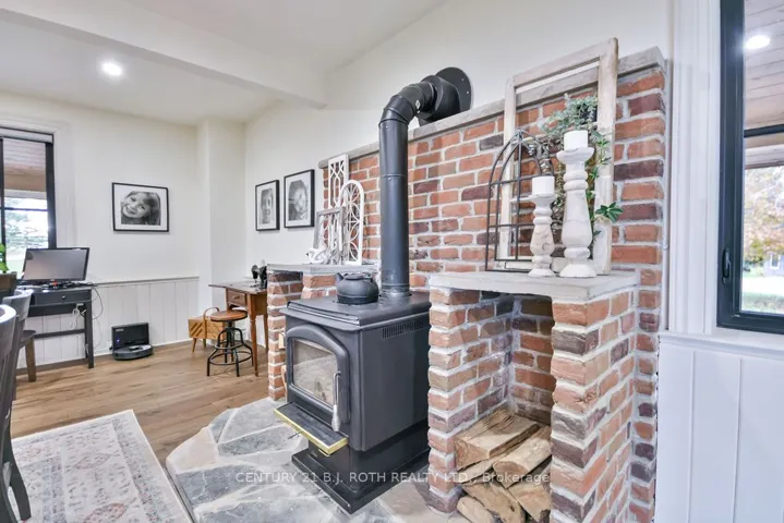 +"PublicRemarks": "This timeless all-brick Victorian farmhouse, set on over 3 acres of gently rolling countryside, perfectly blends 1800s character with modern sophistication. Fully renovated in 2023, it offers a seamless fusion of historic charm and contemporary comfort, featuring a chef-inspired kitchen with a hidden pantry, a wall of natural light, a formal dining room with a cozy wood-burning fireplace, and a spacious family room accented by a propane fireplace. The wrap-around front porch enhances the home's curb appeal, while main-floor laundry with garage access adds everyday convenience. Step outside to enjoy 360-degree panoramic views stretching 15 miles, unwind by the fire pit patio, or explore multiple outbuildings ideal for storage or hobby farming. With solar panels, a durable metal roof, and an attached garage, this remarkable property offers sustainability, functionality, and elegance-all within minutes of major amenities yet surrounded by tranquil country beauty."