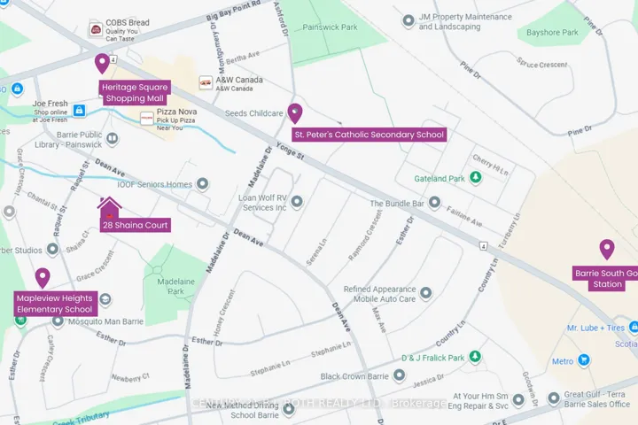 +"PublicRemarks": "Welcome to 28 Shaina Court! Located on a quiet, family-friendly court in one of South Barrie's most sought-after neighbourhoods. This stunning all-brick home offers nearly 3,000 sq ft of beautifully finished living space. Exceptional curb appeal greets you with stamped concrete stairs and walkway, stylish new garage doors, and a welcoming front entry. Inside, the spacious foyer opens to a bright living room and a formal dining room-perfect for family gatherings. The eat-in kitchen features stainless steel appliances, a full pantry wall, breakfast bar, and walkout to a maintenance-free composite deck overlooking the landscaped, fully fenced yard. A cozy sunken family room with a gas fireplace, an updated powder room and a laundry/mud room with inside entry to the garage completes the main level. Upstairs, discover four large bedrooms including a generous primary suite with walk-in closet and a luxurious ensuite with soaker tub and separate shower! The professionally finished basement provides additional living space with a games room, fifth bedroom, den, and 3-piece bath-ideal for guests or a growing family. Recent updates include a new furnace (2023), A/C (2025), fresh paint, and new flooring throughout the main level. Conveniently located minutes from Barrie's South GO Station, schools, shopping, and parks.This move-in-ready home is the total package-spacious, stylish, and perfectly located!"