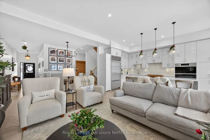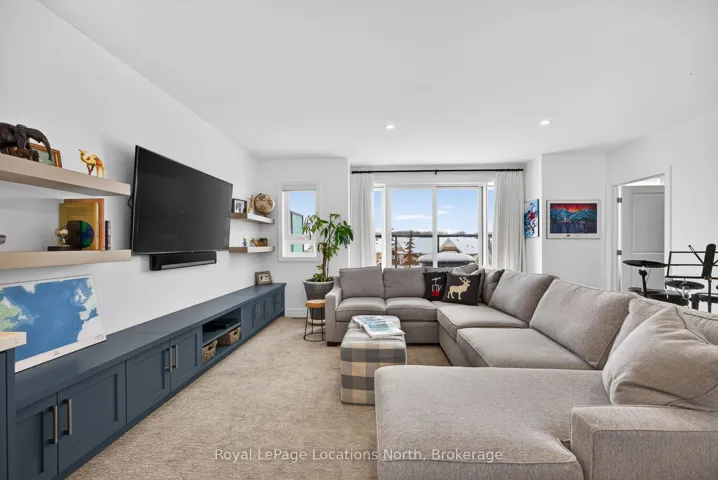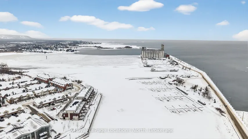 +"PublicRemarks": "Magnificent luxury waterfront residence in downtown Collingwood's sought-after Shipyards community - this is a rare offering! Built in 2021, this stunning 3-storey plus basement townhouse features expansive views of Georgian Bay and the Collingwood grain terminals from walkout patios on all three levels. Spacious and thoughtfully designed, the home offers 3,200 sq ft of finished living space across 4 floors, with 3 bedrooms, 3 full bathrooms, 2 half bathrooms, and a private in-home elevator servicing all floors. The primary suite is breathtaking, featuring a private balcony walkout, elegant wainscoting, a large walk-in closet, and a stunning ensuite with double vanity, glass shower, and a standalone soaker tub. The bright chef's kitchen boasts high-end stainless steel appliances and a large 4-stool waterfall island, offering ample storage and an ideal space for entertaining, while overlooking the cozy living room with a gas fireplace - again, with abundant views of Georgian Bay. The upper family room is complete with impressive wall-to-wall built-in cabinetry, housing a wet bar and a Sub-Zero wine fridge with multiple temperature zones. 2 rooftop terraces provide incredible outdoor spaces to enjoy sunrises over Georgian Bay and sunsets across the ski hills and escarpment. The finished basement adds versatility with a full bathroom and a luxurious glass-enclosed steam shower, with the elevator providing seamless access from bottom to top. Perfectly positioned right on the water, step outside to enjoy boating, kayaking, paddle boarding, or sailing, stroll along the harbour walkway, and take advantage of being just steps from downtown Collingwood. Enjoy easy walking access to shops, restaurants, the LCBO, and groceries, while remaining a short drive to ski hills, golf courses, hiking trails, and beautiful beaches. This is truly one of Collingwood's most sought-after waterfront lifestyles."