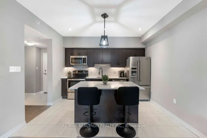 +"PublicRemarks": "Welcome to the top-floor 2 Bed & 1 Bath condo in the art-inspired Gallery Condominiums, set on 14 acres of forested grounds with walking trails. This 880 sqft open-concept suite features stainless steel appliances, updated backsplash, pot lights throughout, in-suite laundry (2021), underground parking, and a storage locker. The primary bedroom offers his and hers closets with a large window w/plenty of natural light. Additional spacious 2nd bedroom and updated 4-piece bath. Enjoy a covered balcony with BBQs permitted, community rooftop terrace (Building 302), ample visitor parking, onsite superintendent, security system, elevator, and landscaped gardens. Conveniently located close to Hwy 400, Go Train, shopping, restaurants, and all amenities."