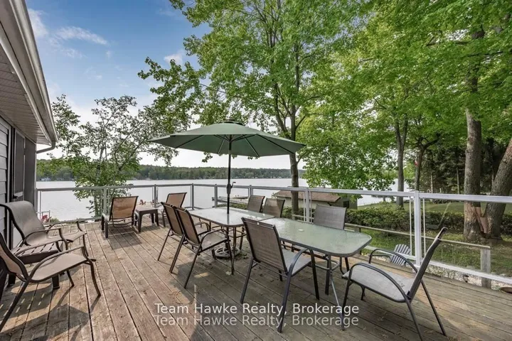 +"PublicRemarks": "Escape the city and embrace lakeside living! Located 15 minutes from Penetanguishene and under 2 hours from the GTA, this exceptional four-season lakefront home is nestled on a beautifully landscaped 3/4 acre lot with hundreds of feet of private shoreline. The calm, swimmable waters and shallow sandy entry create warmer temperatures that are ideal for families and swimming; a highly sought-after feature compared to larger, busier lakes. Offering just under 2,400 square feet of finished living space, this spacious and thoughtfully designed home features 3 bedrooms and 3 bathrooms, perfectly suited for full-time living or a luxury recreational retreat. The main-floor primary suite includes a private ensuite and custom built-in wardrobes, while the open-concept living and dining areas flow seamlessly into an enclosed, lake-facing sunroom with southeastern exposure - the perfect place to enjoy morning light and lake breezes. Sunroom windows can be removed for summer use, with screens remaining in place for convenience. The kitchen offers generous counter space, ample cabinetry, and a built-in dishwasher, making it ideal for entertaining family and guests. The walkout basement features an additional bedroom and two versatile bonus rooms, perfect for guests, a home gym, office, or hobby area. Outdoor living here is equally impressive. Relax in the hot tub, gather around the fire pit, or enjoy games on the bocce ball court, or horseshoe pits located on the point. The fully insulated and heated detached double garage (approximately 800 sq ft) is an entertainer's dream, complete with a bar, table games and lounge, making it the ultimate year-round hangout space. Additional highlights include a private dock, large paved driveway, forced-air gas heating, and central air conditioning for year-round comfort. Best of all, this turnkey waterfront property is being sold fully furnished, simply bring your swimsuit and start enjoying lake life from day one."